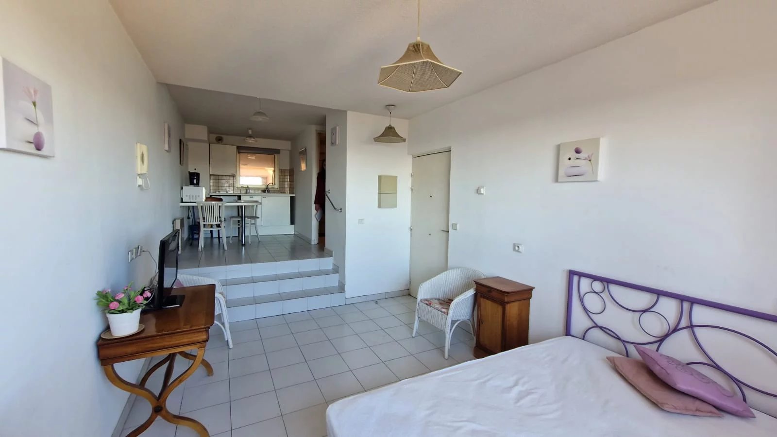 Situé proche de toute les commodités du centre ville, ce F1 de 28m² avec un accès indépendant est composé d'un séjour, d'une cuisine équipée, d'un dégagement avec placard, d'une grande salle de douche avec wc. Jolie vue dégagée jusqu'à la mer. Copropriété de 86 lots. Charges communes générales : 680 €/an