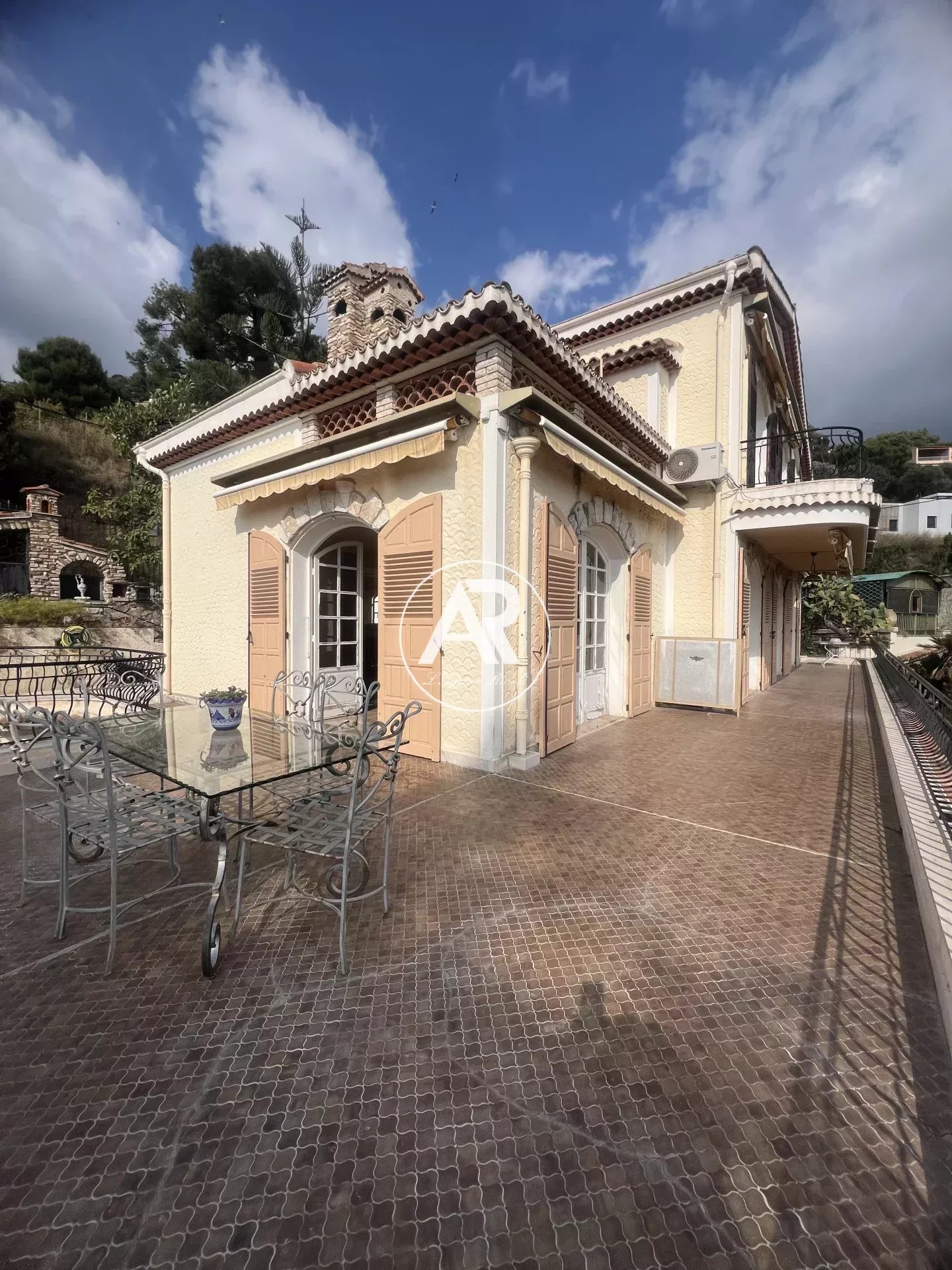 Au calme absolu et en position dominante, maison provençale de 300 m ² habitables sur trois niveaux avec 65 m ² d’annexes et dépendances. Édifiée sur un jardin arboré piscinable d’environ 1000 m ² ,la propreté avec ses spacieuses terrasses bénéficie d’une belle vue mer panoramique. A 5 minutes du centre ville, des plages et à 15 minutes de la Principauté.