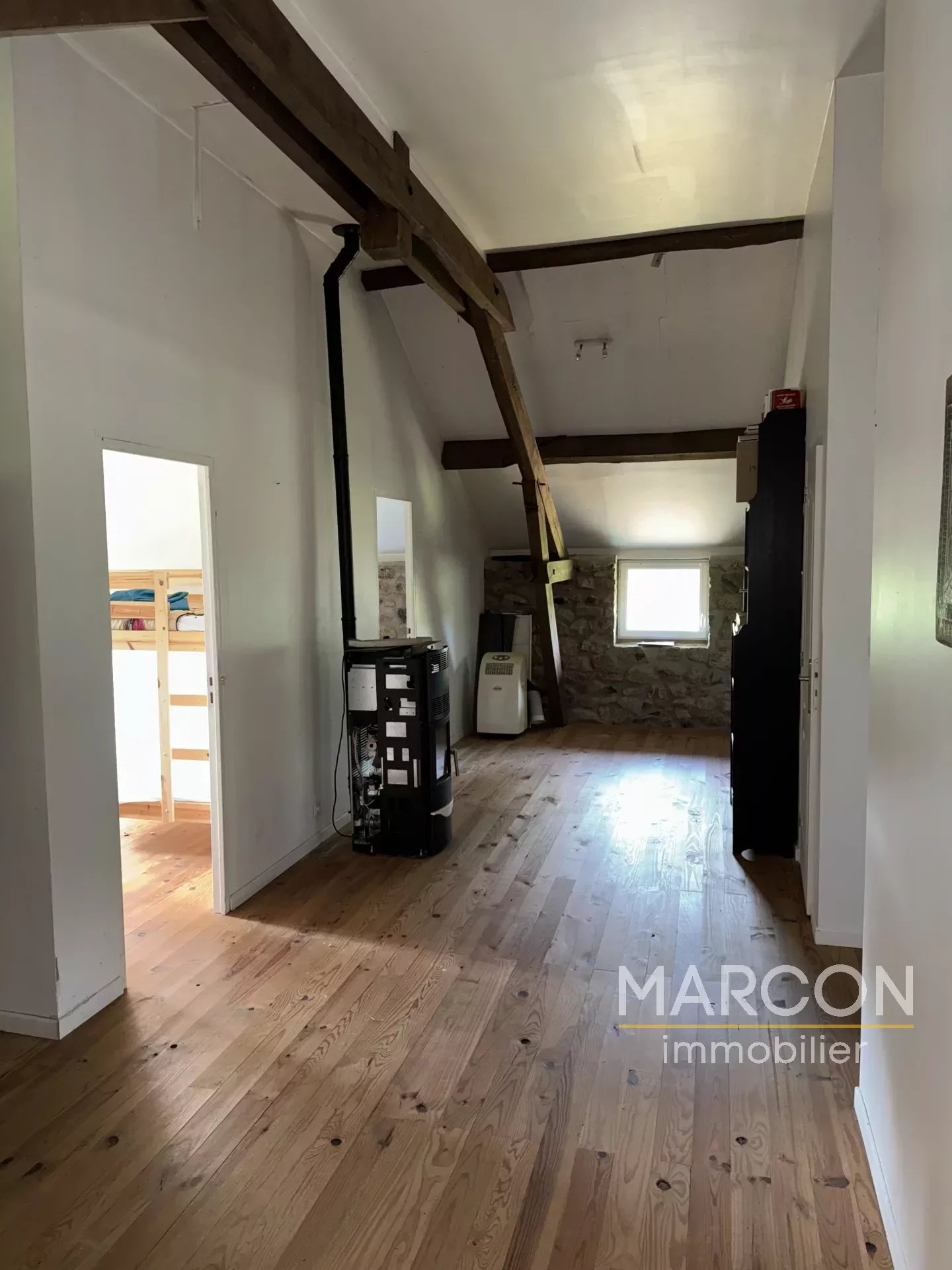 REF 88635. Belle grange réaménagée en habitation d'une surface de 190 m² comprenant au rez-de-chaussée : une pièce à vivre de 90 m² et un cellier. A l'étage : un grande pièce palière dessert 4 chambres dont une avec salle d'eau/WC privative et salle de bains/WC.