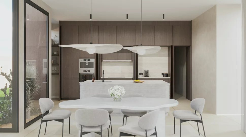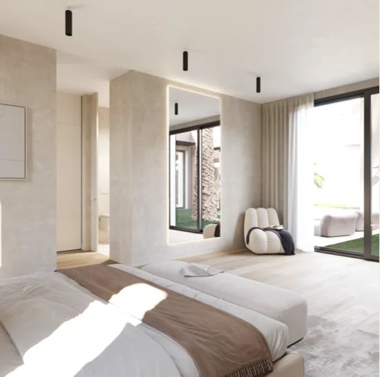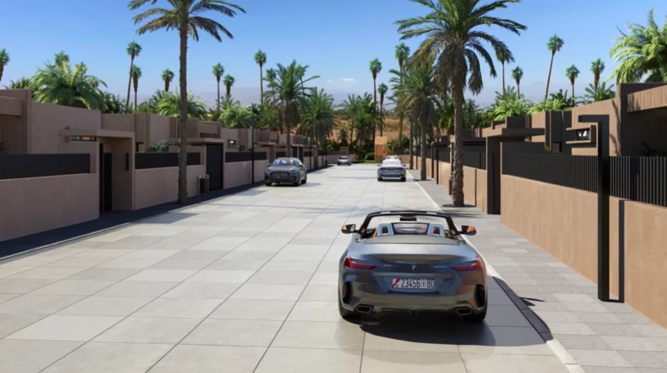 À 13 km sur la route de l’Ourika, face aux montagnes de l’Atlas, la Villa Akal s’implante comme un havre de paix contemporain, où douceur des lignes et matériaux nobles composent un art de vivre épuré. Le plain-pied s’ouvre largement sur le jardin et la piscine, dans un dialogue permanent entre intérieur et extérieur, avec un rooftop panoramique pour profiter des fins de journée sur l’Atlas. À l’intérieur, la distribution respire : une entrée soignée, une grande pièce de vie baignée de lumière avec cuisine ouverte et îlot central, prolongée par le patio et la terrasse. L’espace nuit aligne 3 suites, chacune avec dressing et salle de bain privative, pour préserver l’intimité de tous. Le confort se vit au quotidien : menuiseries aluminium noir RAL 9005 et double vitrage de sécurité pour de grandes baies performantes, isolation renforcée (murs R≈3,15, plafonds R≈5–7,5), climatisation gainable réversible multi-zone pilotée par domotique (écran tactile et smartphone), et pré-équipement solaire en toiture pour maîtriser ses consommations. Dehors, place aux plaisirs simples : piscine privée aux lignes longues (plage immergée, cascade, LED) avec option chauffage par pompe à chaleur, jardin paysager et rooftop personnalisable d’environ 100 m² pour les soirées étoilées. La cuisine est livrée équipée (BOSCH ou équivalent) — four, plaques induction, hotte — et les menuiseries intégrées mêlent finitions noyer et teintes naturelles pour une ambiance chaleureuse et intemporelle. Les chiffres qui comptent: Parcelle : env. 880 m2 • Rooftop : ≈100 m² Surface bâtie : ≈321 m² (dont ≈251 m² hors terrasses) Piscine : ≈10 × 3,10 m, prof. ≈1,50 m, plage immergée On aime: La lumière et la fluidité des espaces de plain-pied. Le confort technique (isolation, double vitrage, clim gainable, domotique, pré-solaire). Le rooftop personnalisable avec vue Atlas et la piscine aux finitions soignées.