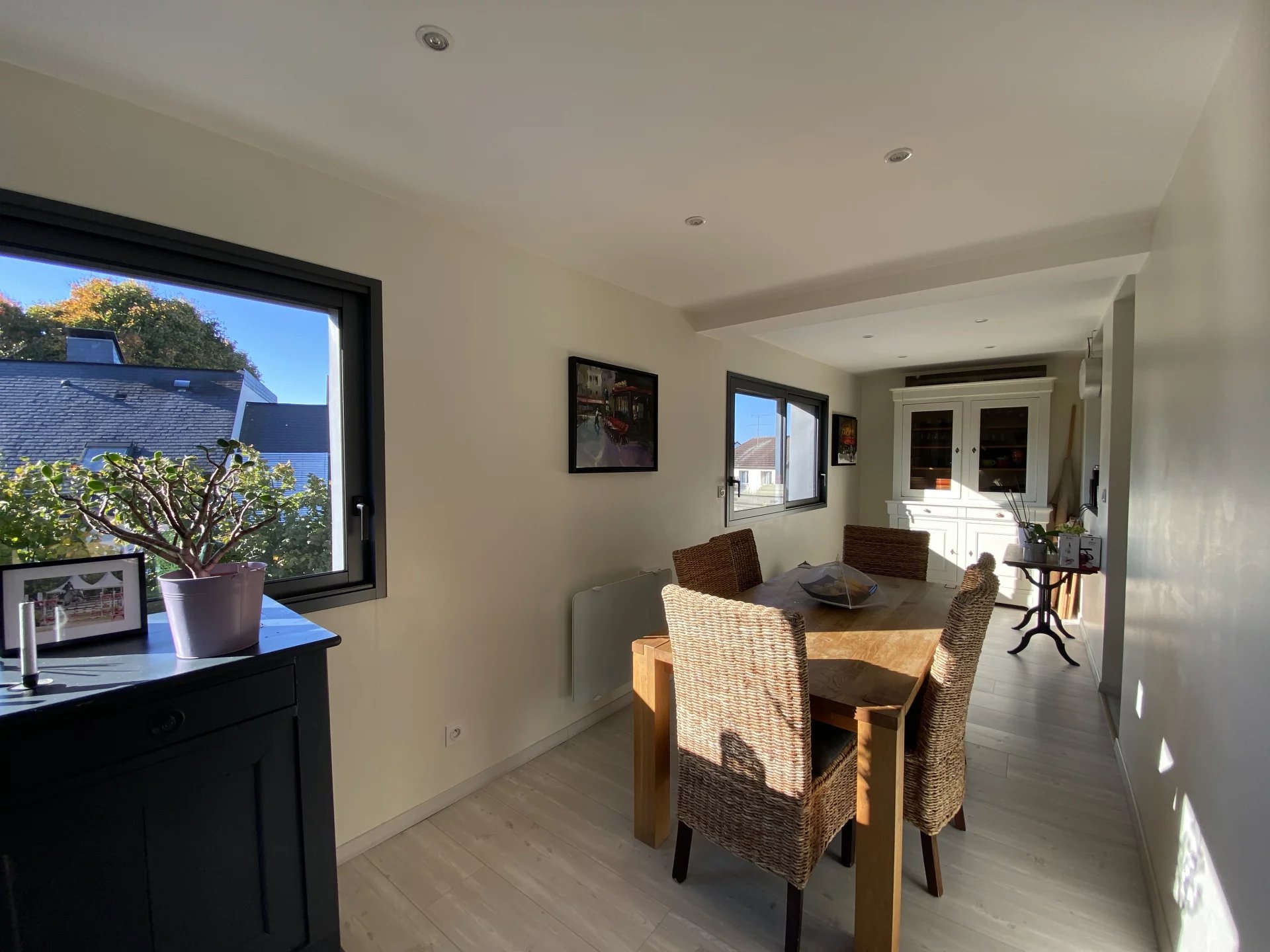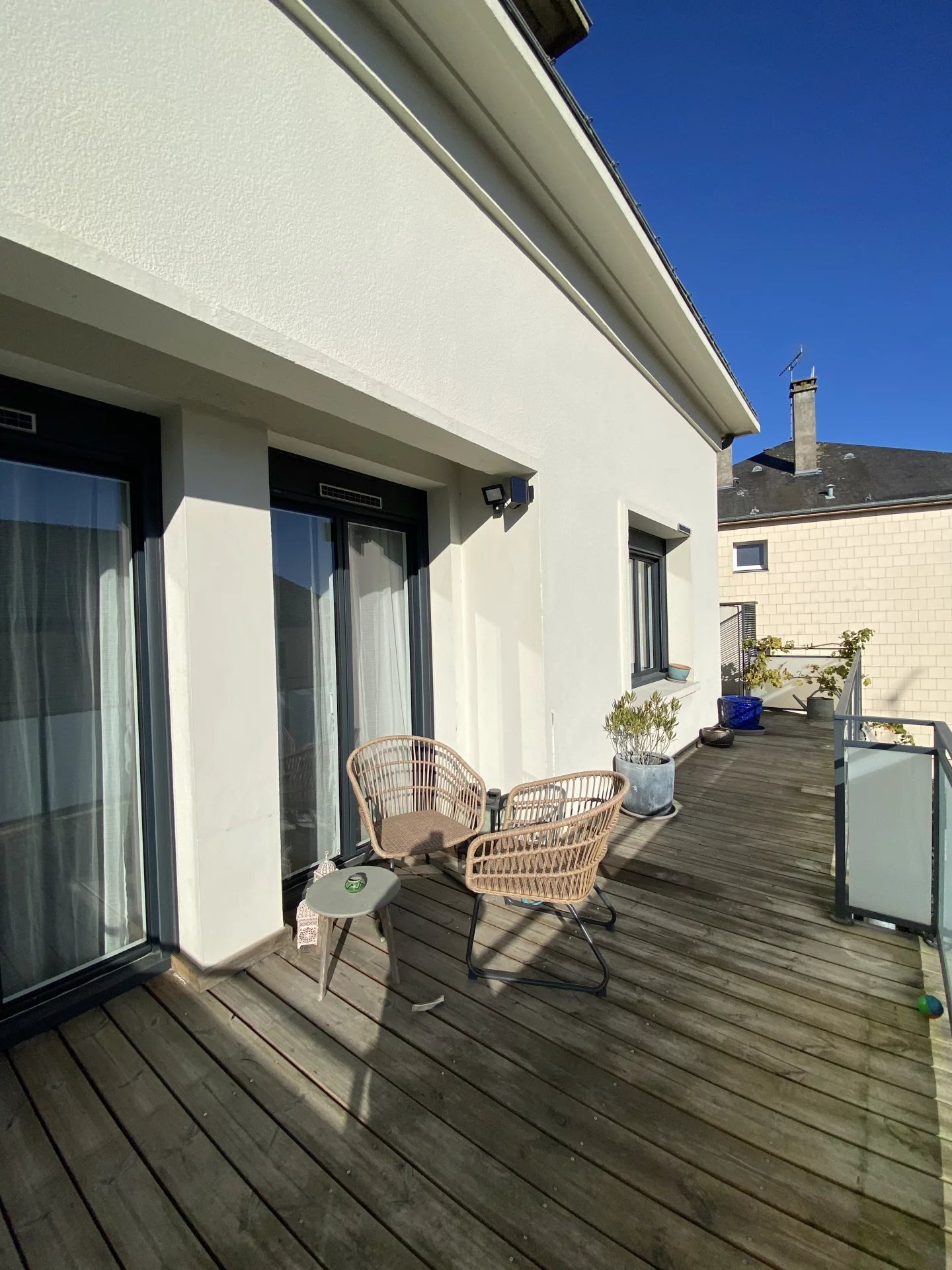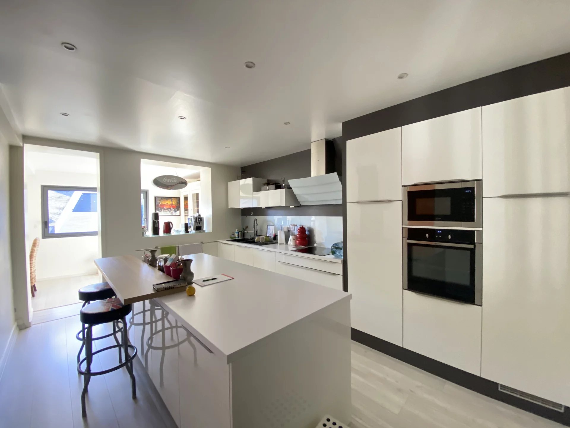 Mayenne. Dans un quartier résidentiel de Laval, à 15 minutes du centre-ville à pied, maison construite en 1964 et totalement restaurée avec goût et matériaux de qualité offrant sur plusieurs niveaux et 255 m²: au rez-de-chaussée, une entrée, au premier étage, un couloir desservant un grand salon lumineux avec parquet, cheminée et accès à une terrasse, une cuisine indépendante, moderne et équipée, une suite parentale avec salle d'eau, wc et dressing avec accès à la terrasse, une chambre, une salle d'eau, un wc, un bureau ou chambre; au deuxième étage, un grand salon-tv-salle de jeux desservant 4 chambres, une salle de bains, un wc, un dressing. Une deuxième entrée au rez-de-jardin donne accès à un local actuellement utilisé en cabinet médical (facilement transformable en appartement indépendant) de 86 m² avec un couloir desservant un espace cuisine, un wc, trois bureaux, une ancienne salle d'eau, une salle d'attente, deux pièces. Espace qu'il serait possible de relier au sous-sol comprenant un garage, une salle de sports, un espace chaufferie-buanderie, une cave. Cette demeure à la distribution optimisée dispose d'un jardin avec un bassin, d'une cour avec un second garage (trois voitures) et au premier étage, d'une seconde terrasse avec un local de 20 m². Environnement calme et agréable, proche de toutes les commodités. Idéal pour une activité libérale, chambres d'hôtes.... A 15 minutes de la gare TGV en voiture. Prestations de qualité.