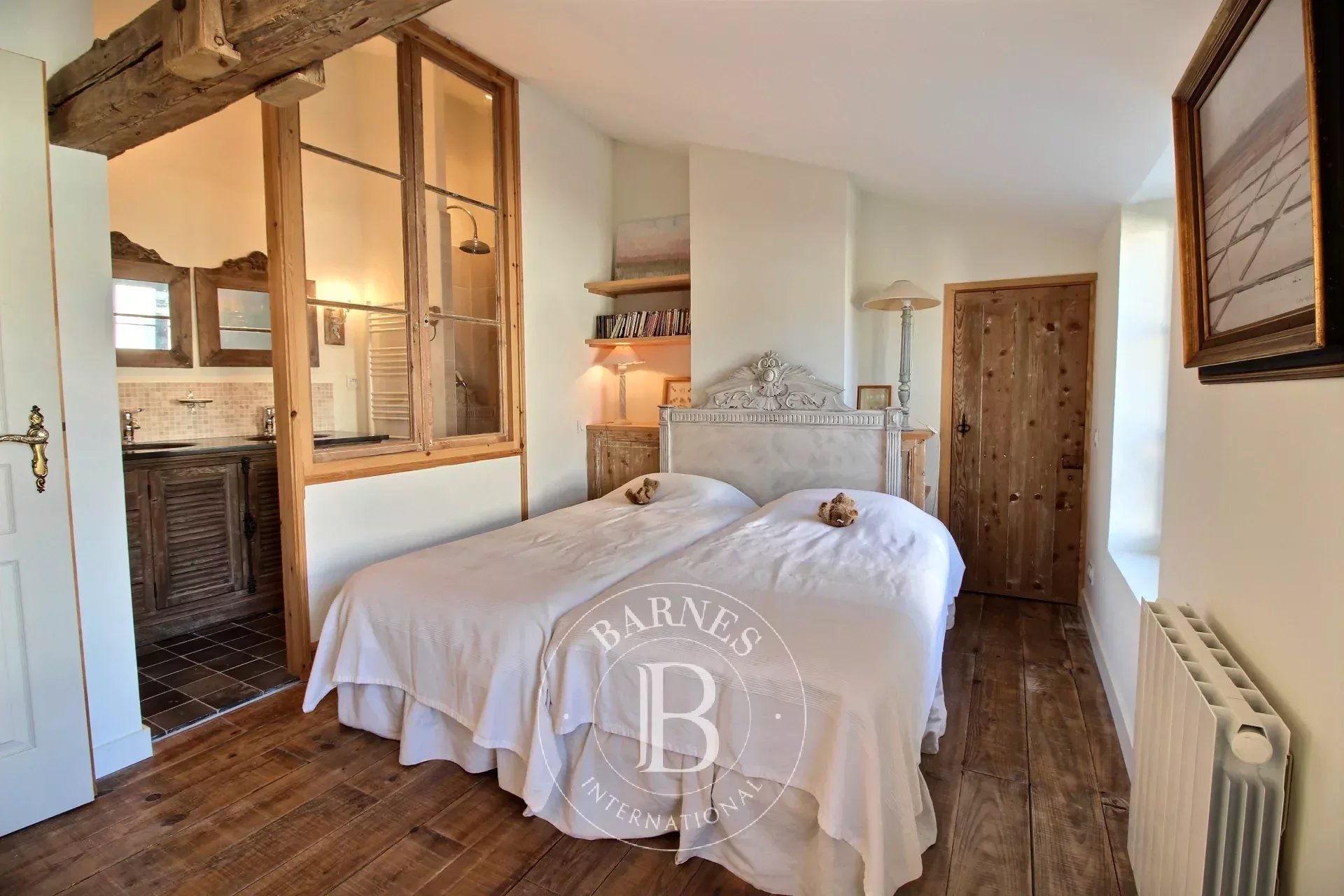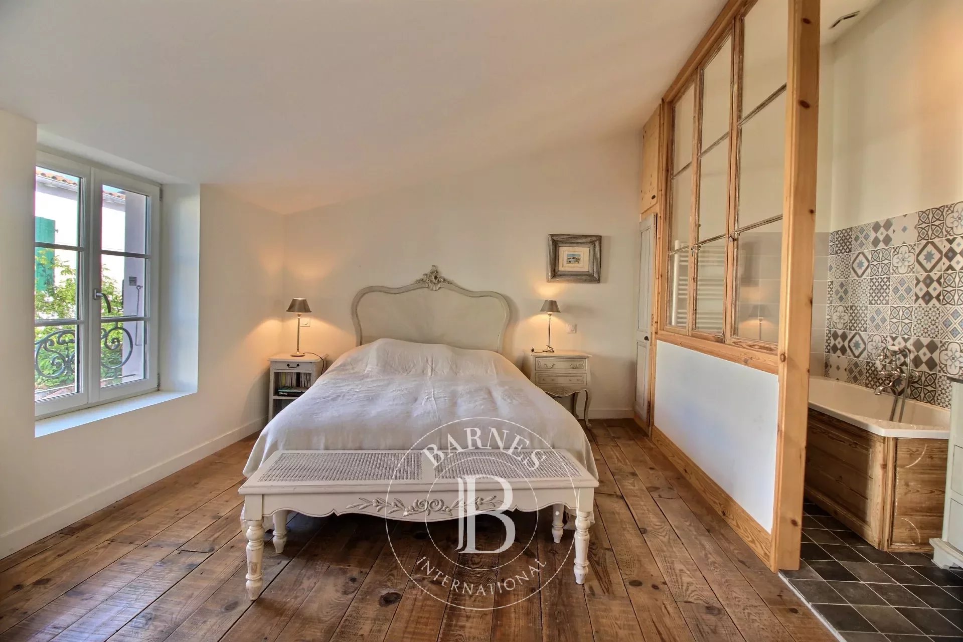 Situé dans le centre village à proximité du marché, chai de 85 m2 habitables environ comprenant une cour avec préau, un séjour avec cheminée et cuisine ouverte. À l'étage, 2 chambres avec chacune leur salle d'eau/bains. Cave, buanderie et cellier. Jolis matériaux anciens avec pierres sèches et poutres apparentes.