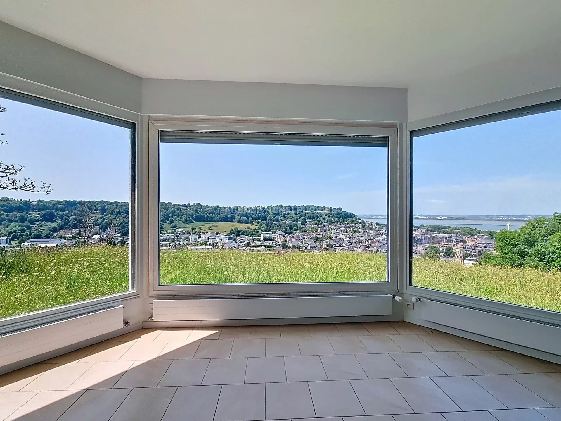 Sur les hauteurs de Honfleur, maison d’architecte avec vue panoramique exceptionnelle sur la ville de Honfleur et l‘estuaire, d’une surface habitable d’environ 175 m² sur une parcelle de 4.700 m².