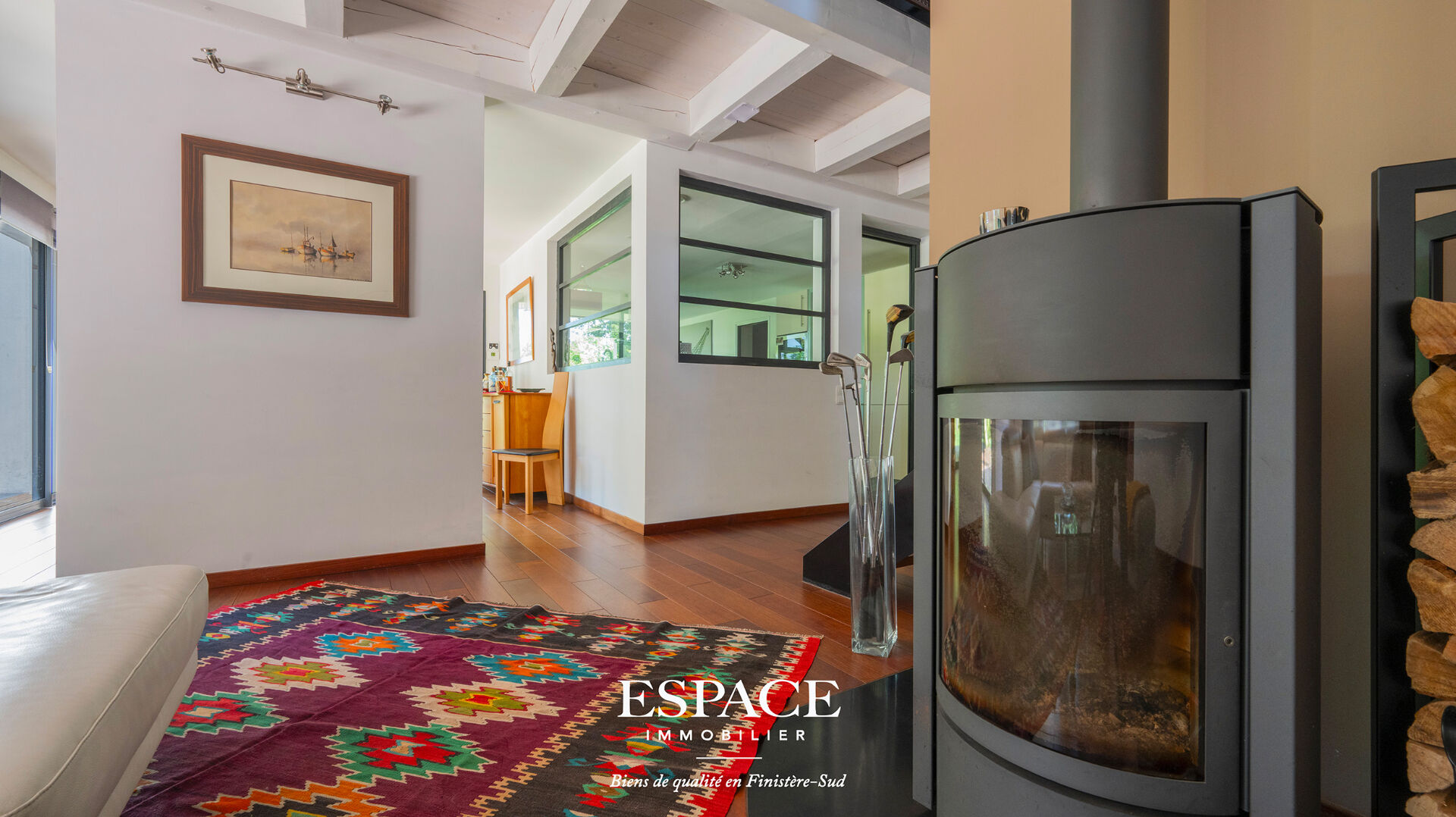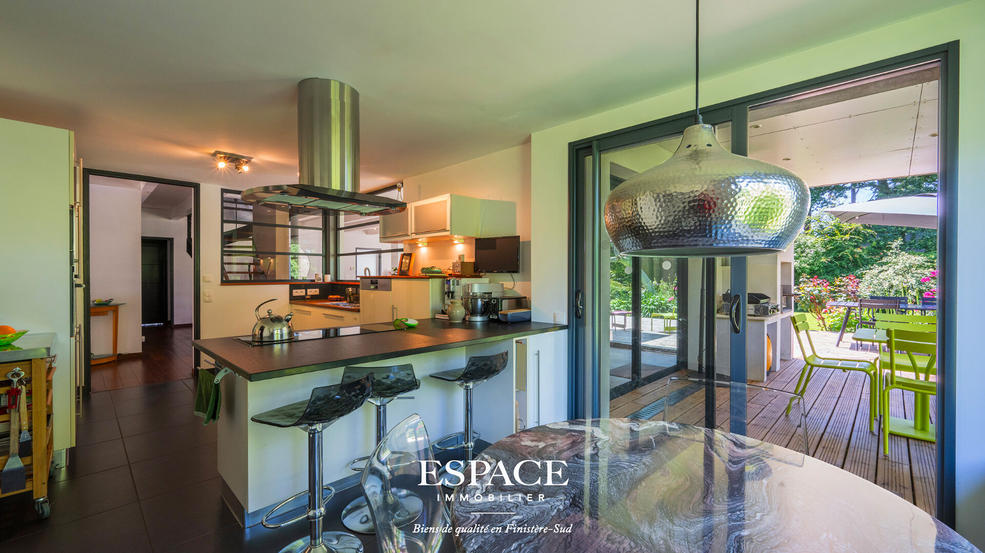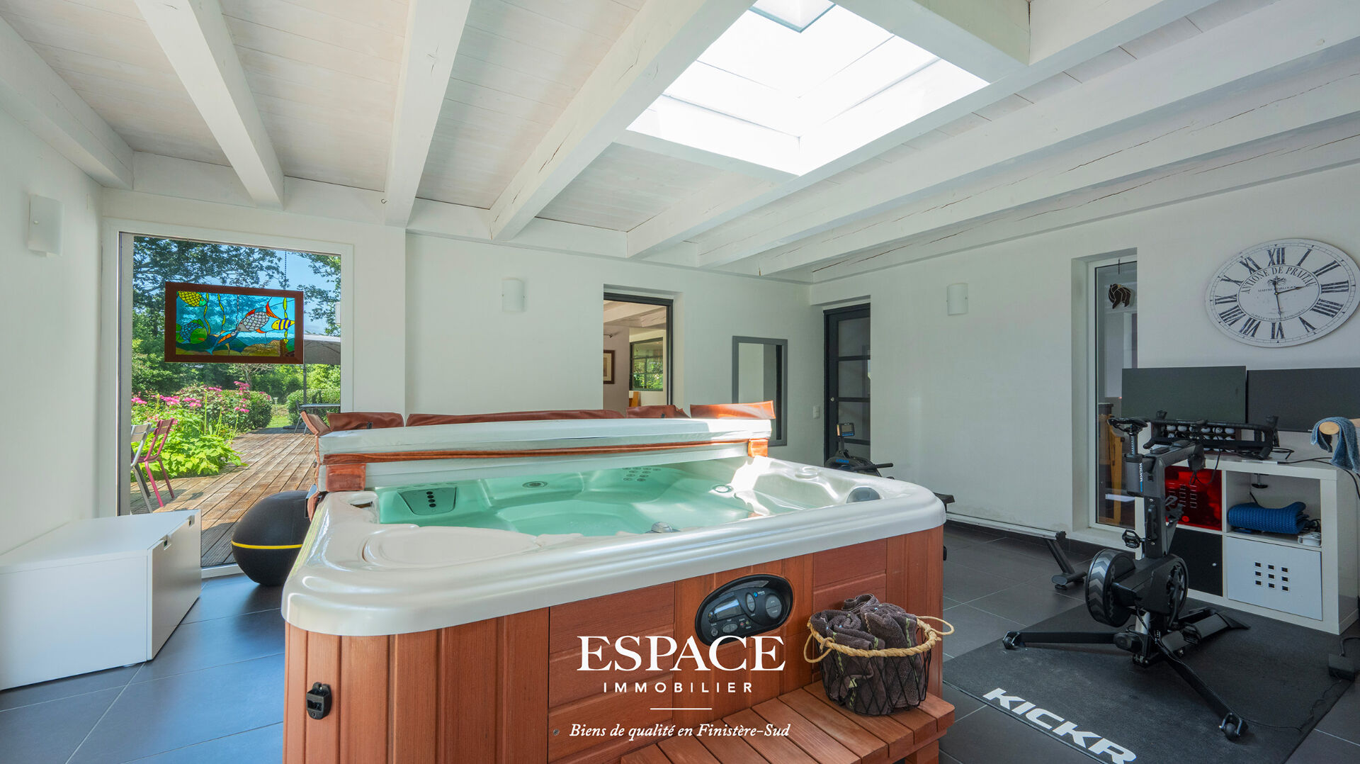 Trégunc aux portes de Concarneau, sublime maison d'architecte aux lignes audacieuses à seulement 2 kms des plages et des commerces, construite en 2009, offrant 327 m² habitables sur un terrain arboré de 2 665 m², au calme et sans vis-à-vis. Le rez-de-chaussée se compose d'une entrée d'un vaste salon-séjour lumineux avec poêle à bois, d'une cuisine ouverte avec arrière-cuisine, deux chambres dont une avec une suite parentale, dressing et salle d'eau, ainsi que d'un espace bien-être comprenant une salle de sport, un jacuzzi et une salle d'eau. A l'étage, vous trouverez deux autres chambres, un bureau, une salle d'eau et une terrasse pour profiter des extérieurs. Un T2 indépendant de 40 m² complète l'ensemble, idéal pour du locatif, une activité professionnelle, ou pour recevoir en toute autonomie. La maison est également équipée de panneaux solaires, alliant confort modernité et performance énergétique. Cuve de récupération d'eau de pluie enterrée de 10 000 l sur réseau secondaire. Un bien rare, spacieux et parfaitement situé, idéal pour une vie entre terre et mer. Pour visiter ou pour obtenir plus d'informations sur l'achat de cette maison contacter l' agence immobilière Espace Immobilier à Concarneau au 02.98.51.00.00 ou rejoignez-nous sur notre site internet www.ei-concarneau.com. Les informations sur les risques auxquels ce bien est exposé sont disponibles sur le site Géorisques [www.georisques.gouv.fr](http://www.georisques.gouv.fr). (3.60 % honoraires TTC à la charge de l'acquéreur.) Maryline ALVAREZ (EI) Agent Commercial - Numéro RSAC : ADC29032025000000020 - .