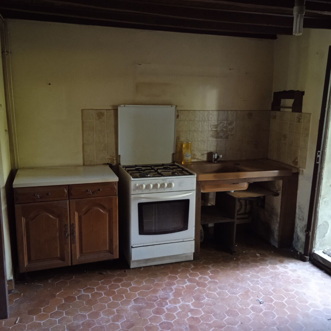 entre Bellême et Mortagne, maison à rénover comprenant en rez de chaussée, séjour, cuisine salle d'eau avec wc au 1er étage, 2 chambres grand garage et atelier terrain de 800 m²