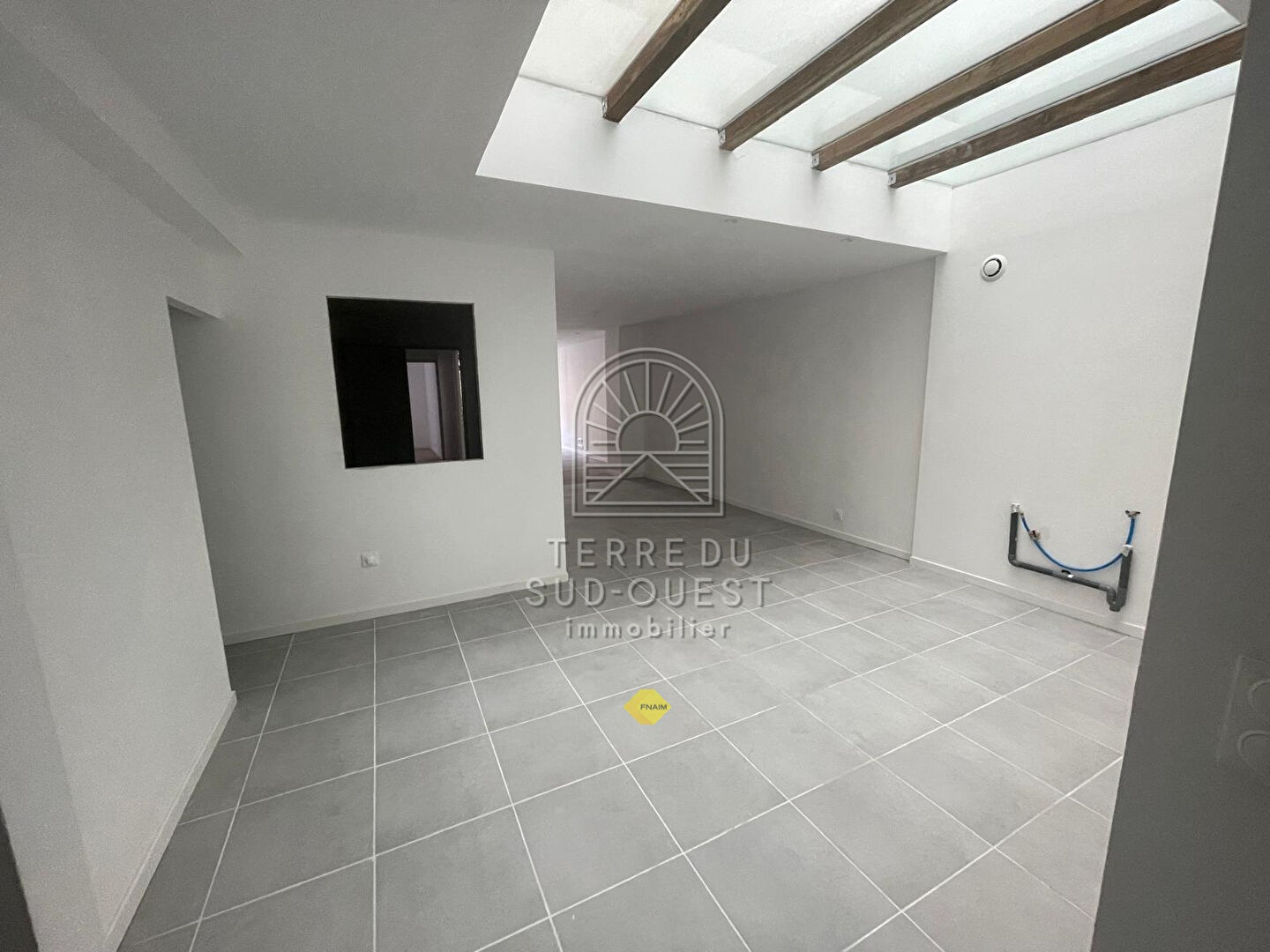 TERRE DU SUD-OUEST vous propose au centre Peyrehorade ce grand appartement T3 en RDC avec terrasse à usage exclusif d'environ 40 m². D'une superficie de 84,32 m² loi Carrez, il vous séduira par son atypicité. L'espace cuisine de 19 m² éclairée par une vaste verrière donne sur son séjour qui s'étire jusqu'au patio et dessert le coin nuit avec ses 2 chambres et sa salle d'eau plus WC. En cours de rénovation, il ne vous restera plus qu'à installer la cuisine de votre choix. (7.00 % honoraires TTC à la charge de l'acquéreur.)