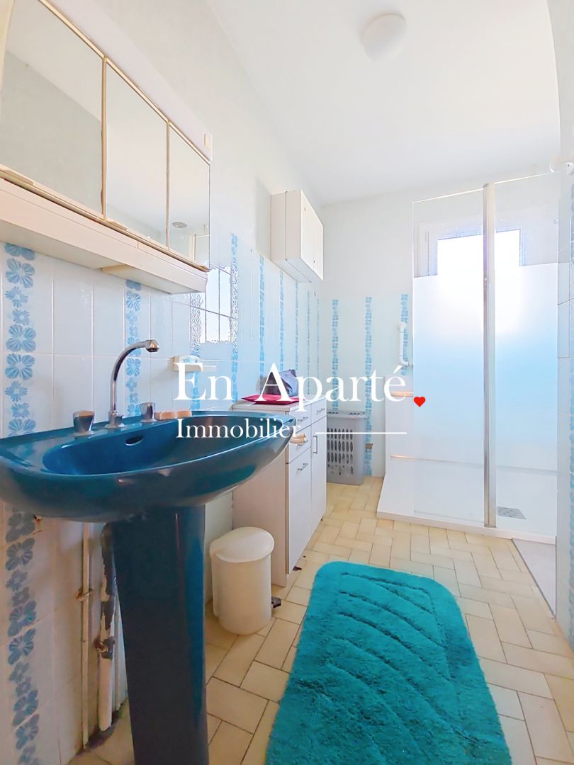L'agence En Aparté vous propose à la vente cette charmante maison à proximité du centre ville et de la mer. Elle dispose de trois chambres, un bureau, bel espace de vie sur terrasse sud et véranda, cuisine indépendante, salle d'eau et WC. Le tout sur sous sol complet et beau terrain arboré de 950m2. Ses atouts : Exposition Sud, proximité du centre, beau terrain, vie de plain pieds, sous sol complet. Travaux à prévoir pour remettre au gout du jour mais double vitrage en PVC et bon DPE. Prix 365.000 Euros, honoraires charge vendeur N'hésitez pas à nous contacter pour plus d'informations. Les informations sur les risques auxquels ce bien est exposé sont disponibles sur le site www.georisques.gouv.fr