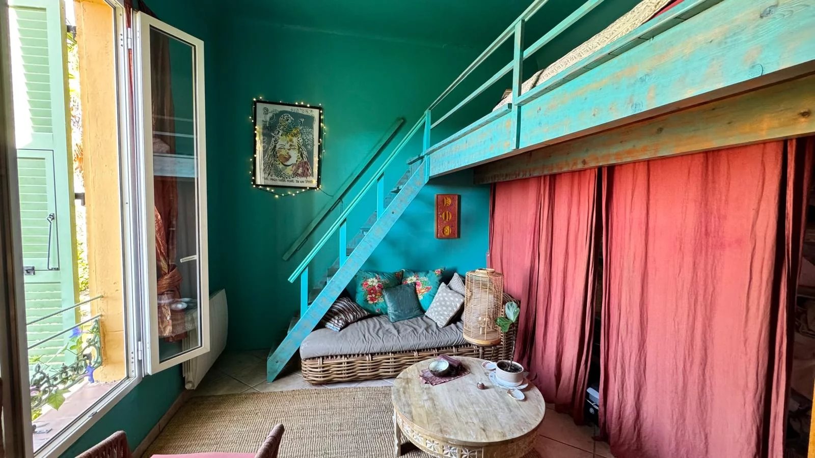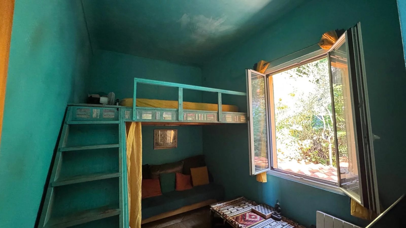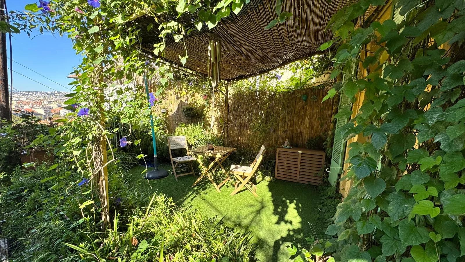 Accessible par quelques paliers d’escaliers (4 au total), la maison se mérite, mais une fois arrivée, la magie opère : le calme, la verdure et la lumière vous offrent une sensation unique de déconnexion, comme un cocon suspendu au-dessus de la ville.