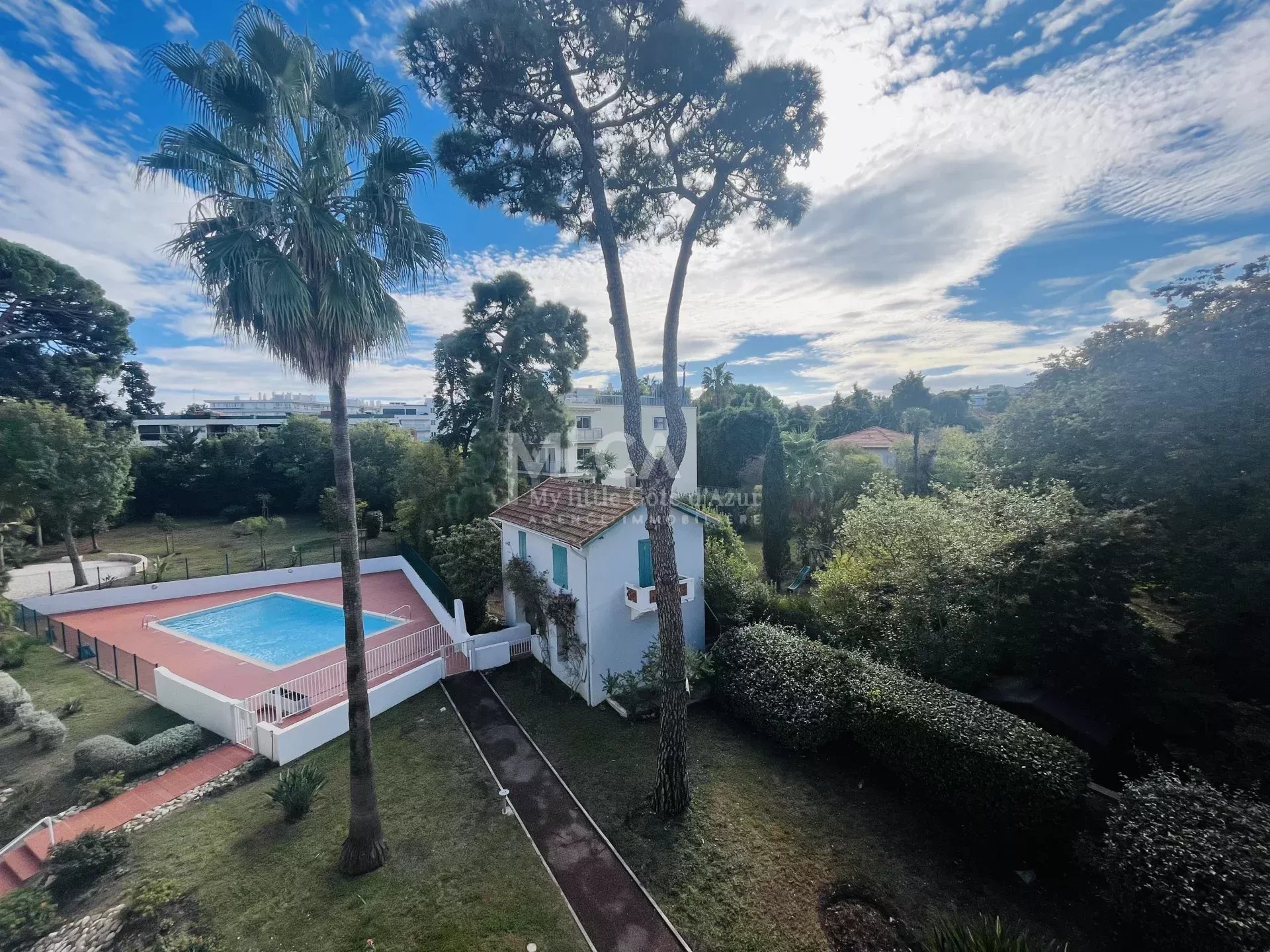 Au début du Bld du Cap, dans résidence de standing avec parc et piscine, au calme, commerces et plages au pied de l'immeuble (moins de 100m) Spacieux appartement 3/4 pièces de 90 m² en dernier étage avec vue mer panoramique comprenant : entrée, séjour avec cuisine équipée ouverte ouvrant sur terrasse, une chambre avec salle de bains avec wc en suite, une chambre, une salle de douches, un toilette, une seconde terrasse, double garage