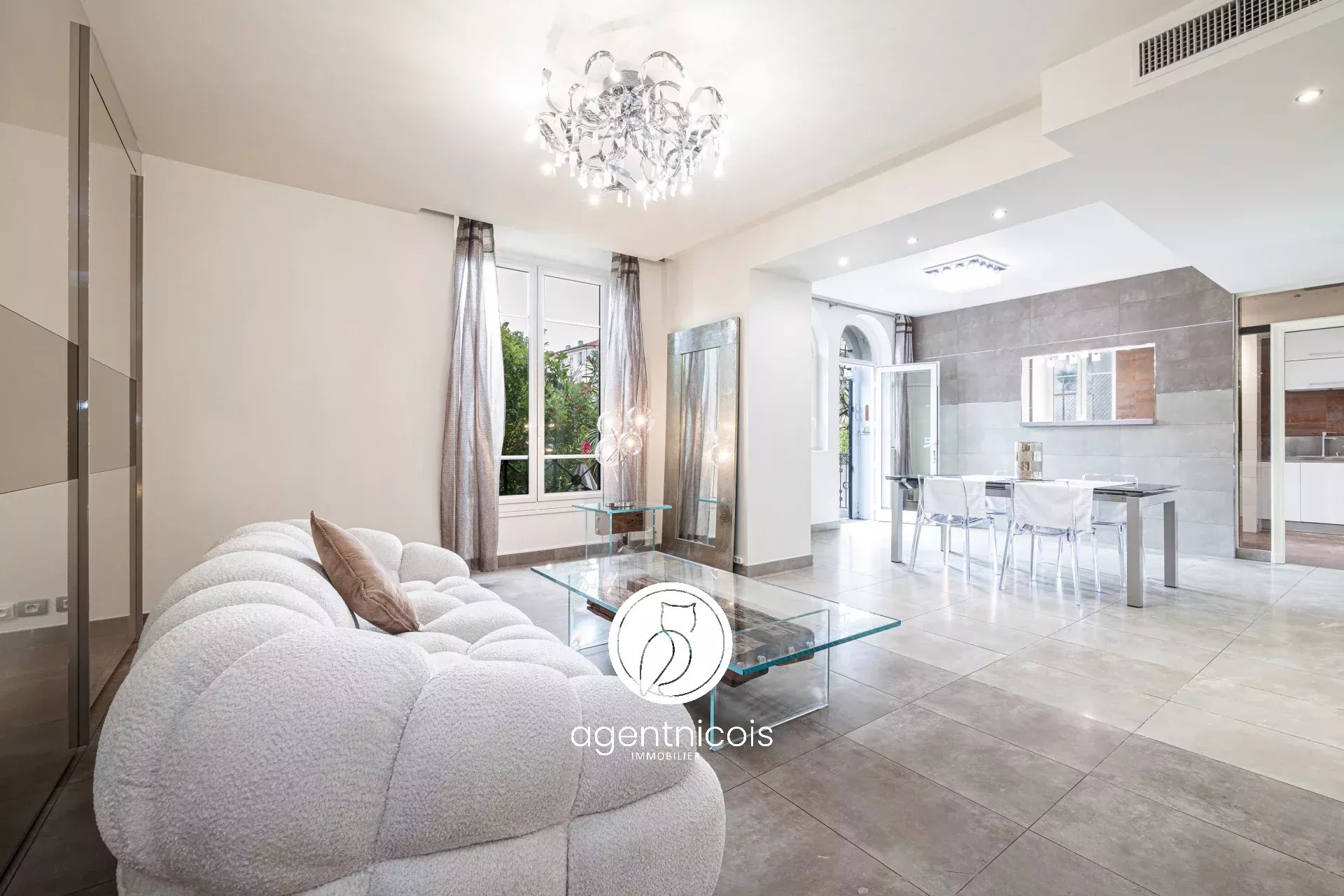 Au coeur du quartier des Musiciens, Place Mozart, proche des commerces, des transports (Ligne 1 & 2 du Tram), du Boulevard Victor Hugo et de la Promenade des anglais.