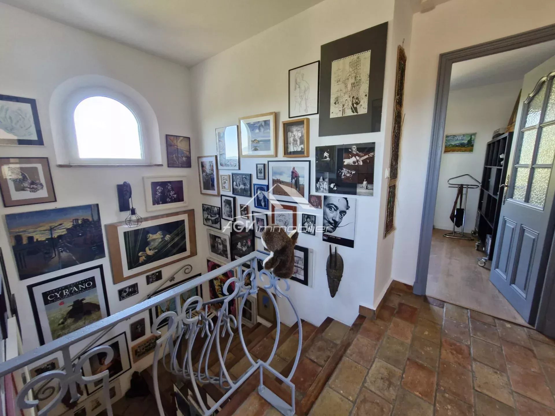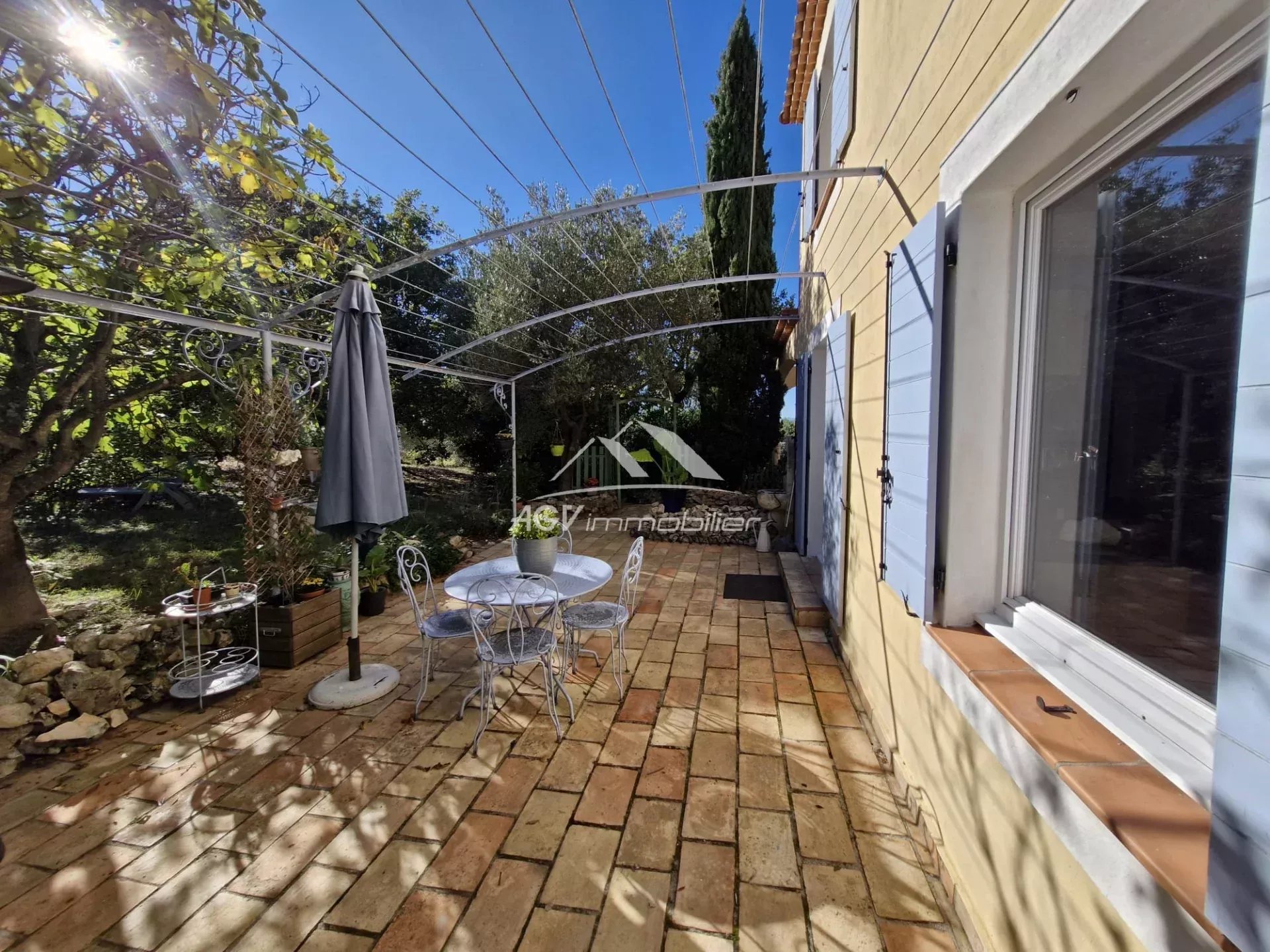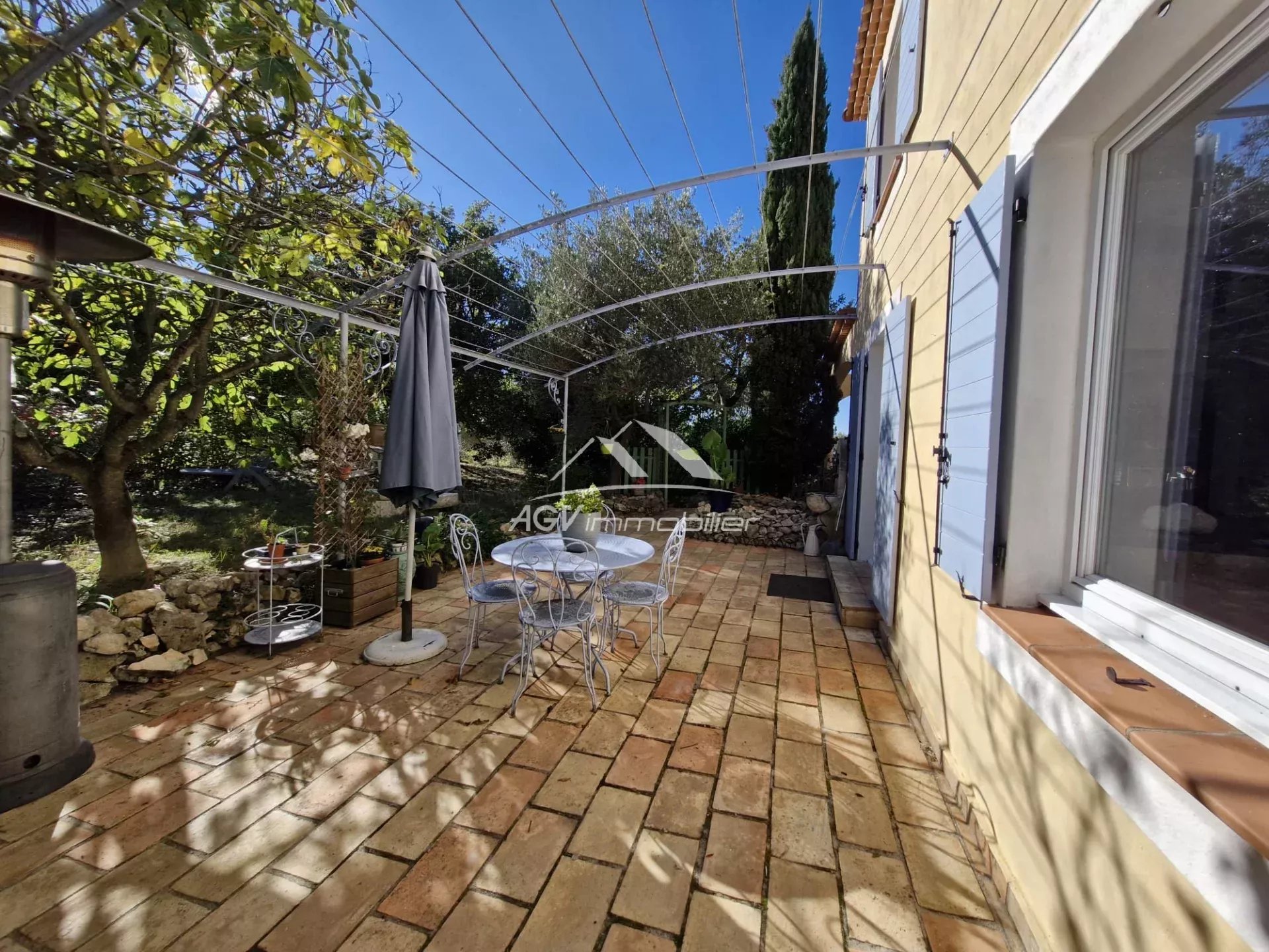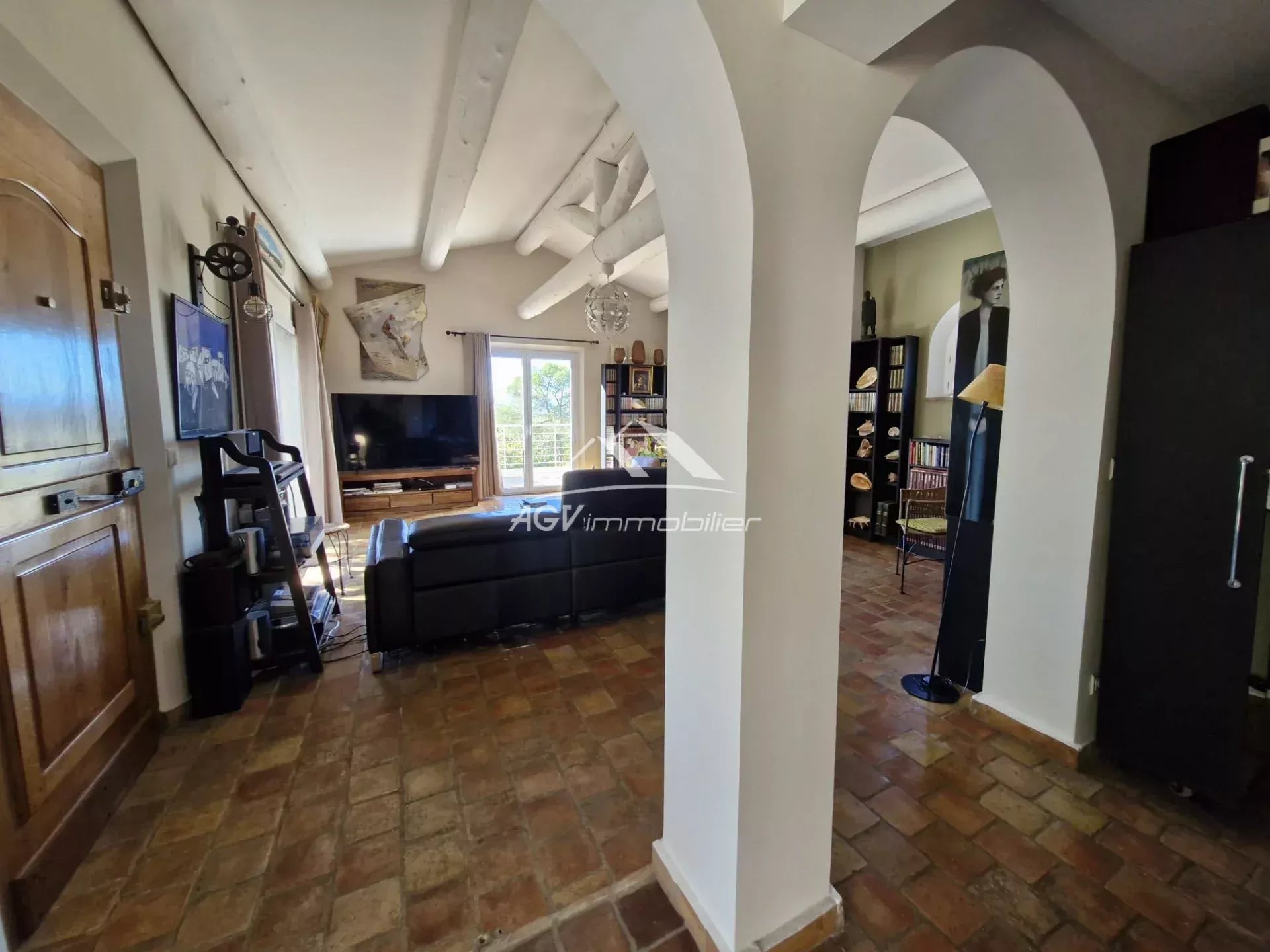 Maison d'environ 130 m² avec vue dominante sur les Cévennes, au calme sur 2436 m² de terrain arboré. Elle se compose en rez-de-chaussée d'une pièce de vie donnant sur deux terrasses , une cuisine équipée, un coin bureau, un toilette et une chambre, l'étage comprend trois chambres et une salle de bain avec toilette. En sous sol un vaste garage.