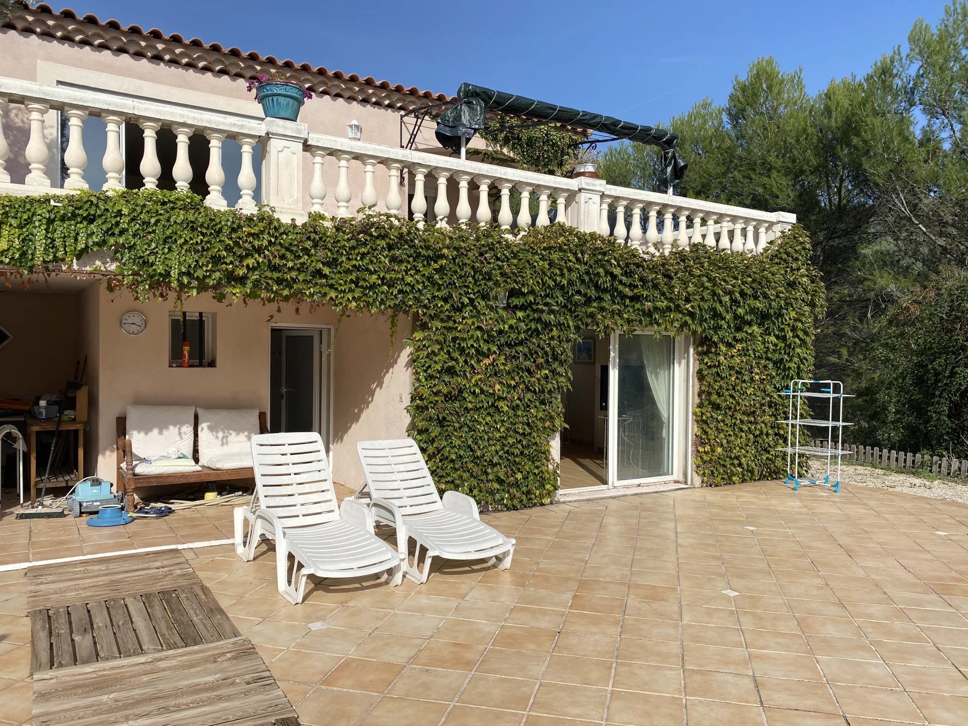 AURIOL sur 4000 m2 de terrain au calme et ensoleillé - Très belle VILLA 165m2 . Hall d’entrée - Le salon / salle à manger et la cuisine équipée accèdent directement à une grande Terrasse de 50m2 – Coin nuit une Suite parentale avec salle de bain/baignoire/douche et dressing - 2 chambres / salle d’eau et dressing. Toutes les chambres accèdent directement à une terrasse de 35m2 (porte fenêtres en PVC double vitrage) – Une Salle de jeux -indépendante.