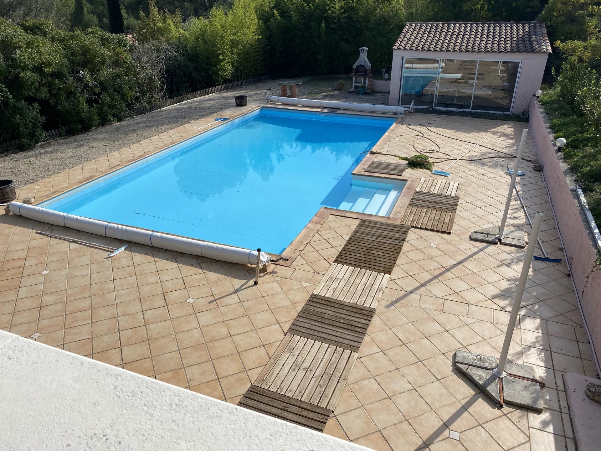 Rez de jardin : Un Studio 25m2 avec Salle d’eau / wc – Un grand garage pour 2 voitures – Une piscine 12 X 6 - Une cuisine d’été 20m2 – Un Terrain de boules – Chauffage Pompe à chaleur gainable – Climatisation / Réversible récente commandable à distance par WIFI – Cheminée bois - eau de forage avec filtration. Classe énergie C – effet de serre A / (51KWh :m2/an) - estimation des coûts annuels d’énergie du logement (entre 1030 € et 1460 € par an) taxe foncière 2900 €. Prix de vente 695 000 € les honoraires sont à la charge du vendeur. Contact agence JC BARATTOLO 06.09.53.73.27 - @ :barattolo-immo@wanadoo.fr