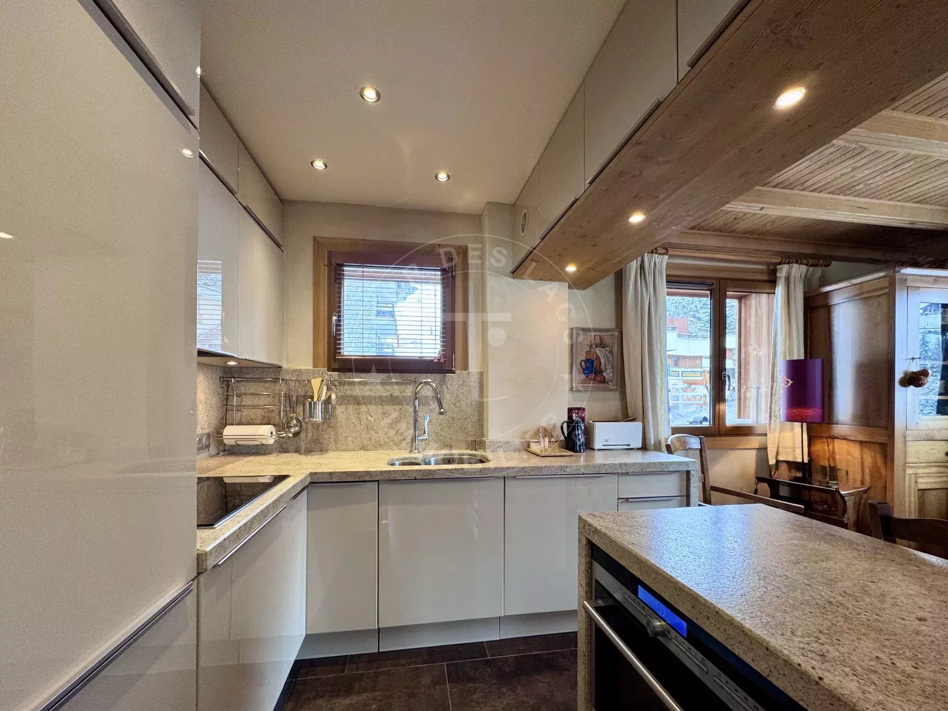 Au rez-de- jardin : 5 garages, un ski-room (à aménager), chaufferie et 10 places de parking complètent ce bien.