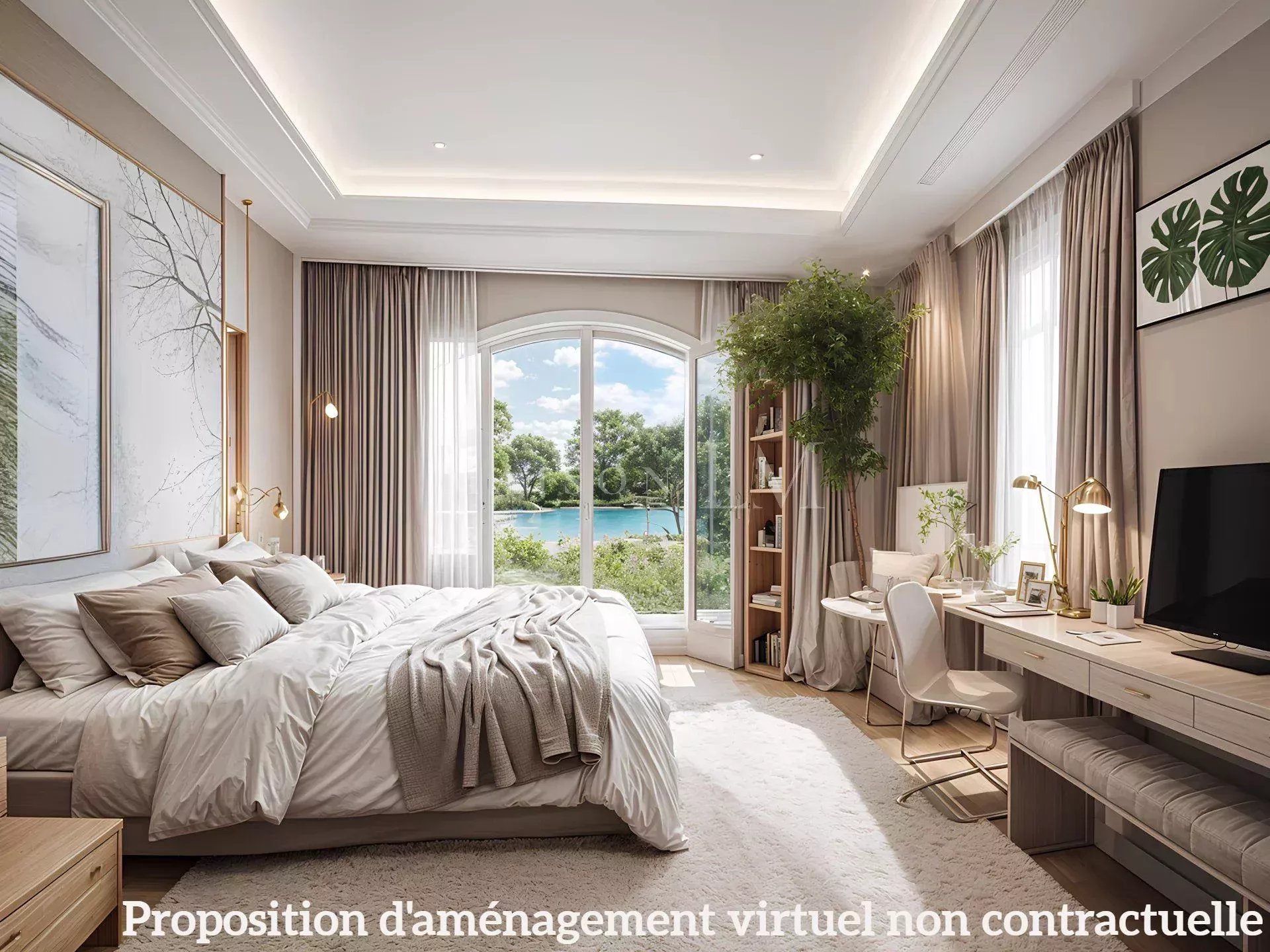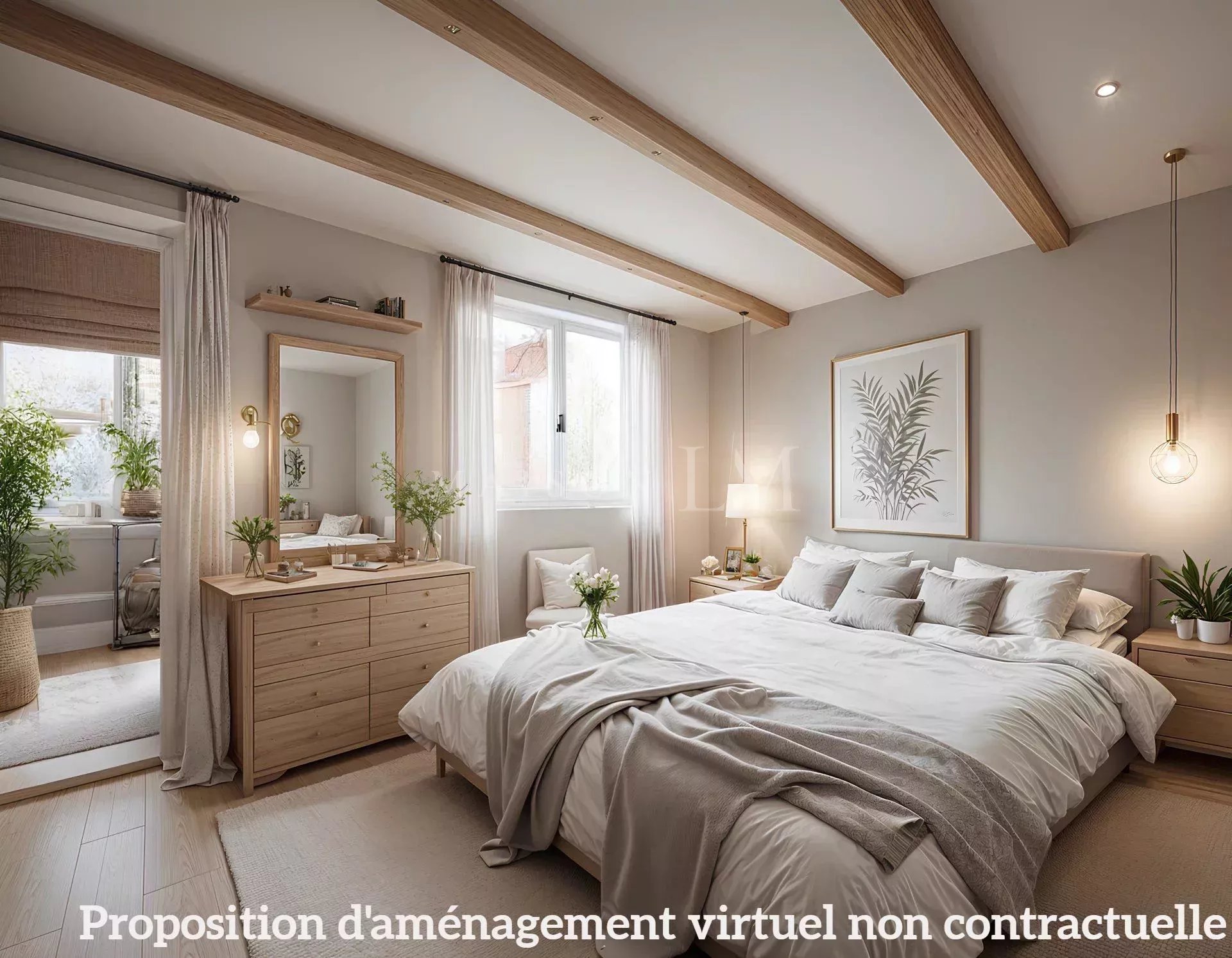 À l'étage : Suite parentale disposant d'une grande salle de bains et d'un dressing, ainsi qu'une seconde chambre avec salle de bains.