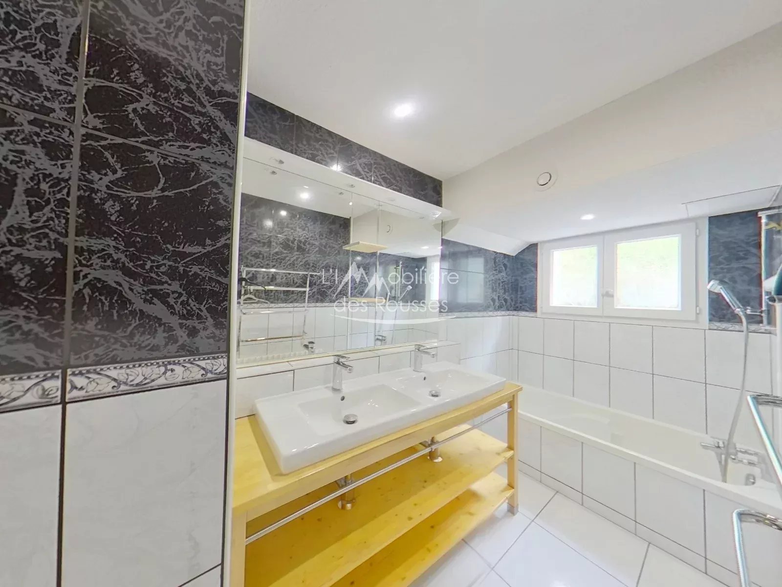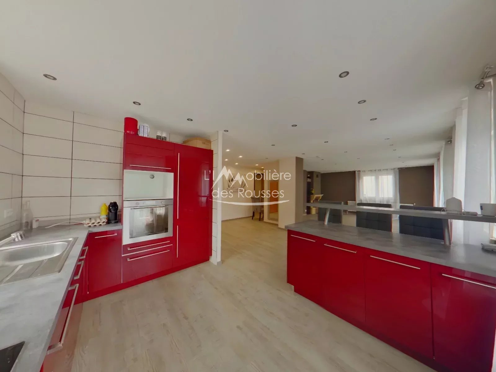 - au premier étage, un appartement de 111 m² avec une cuisine ouverte sur une belle pièce de vie (avec cheminée) et un accès sur le balcon, 3 chambres, salle de bains, toilettes. Chaudière au gaz, avec un DPE en "C".