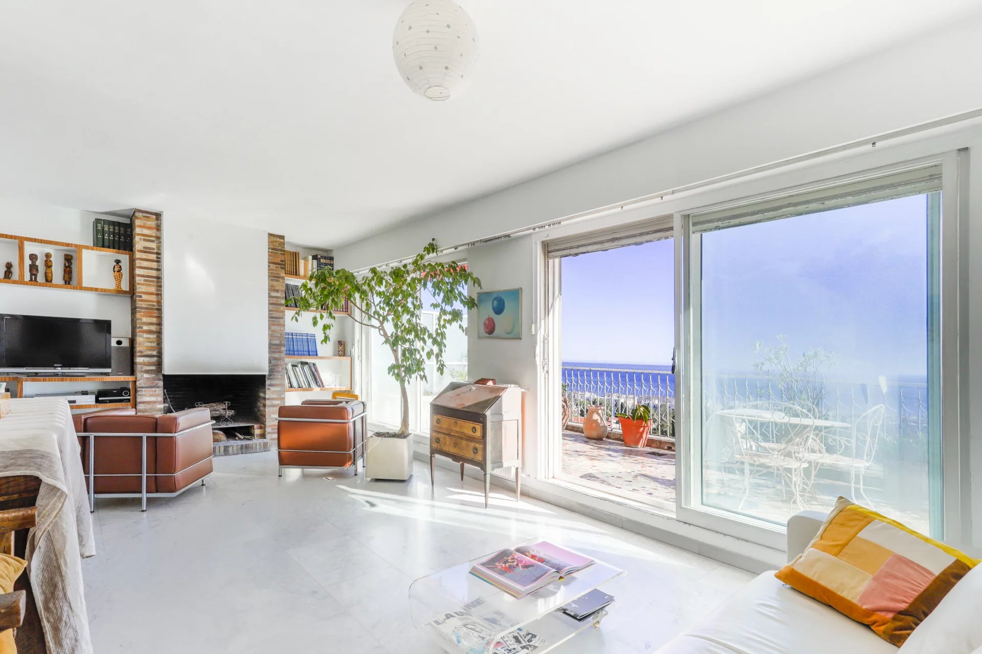 Ce penthouse occupant seul le dernier étage d une résidence de standing avec piscine olympique offre une vue panoramique imprenable sur la mer, du Cap Ferrat au Cap d antilles