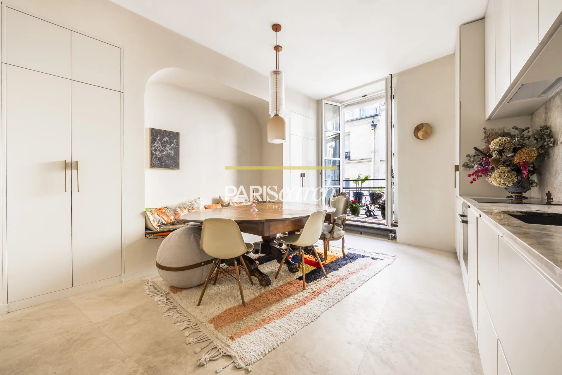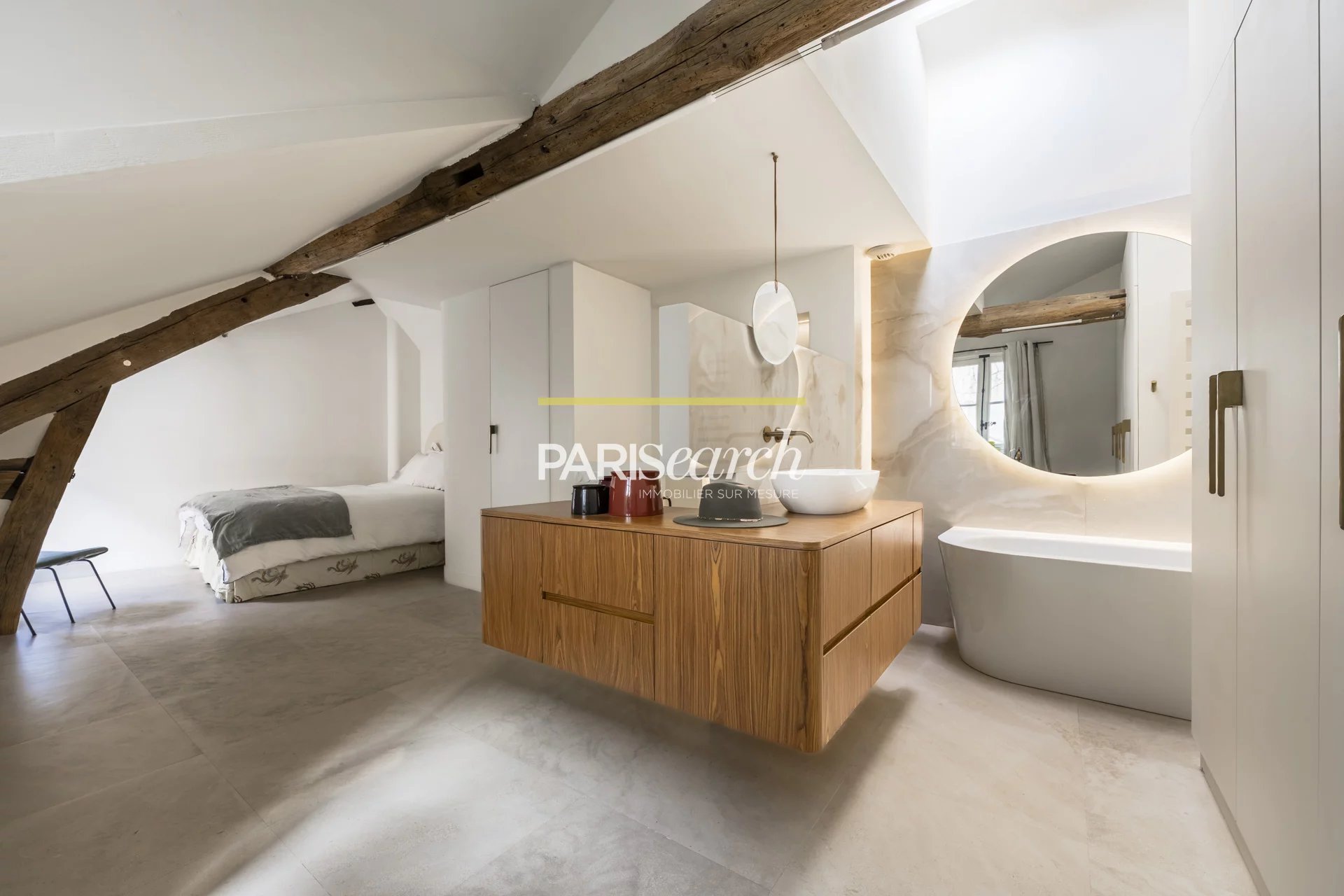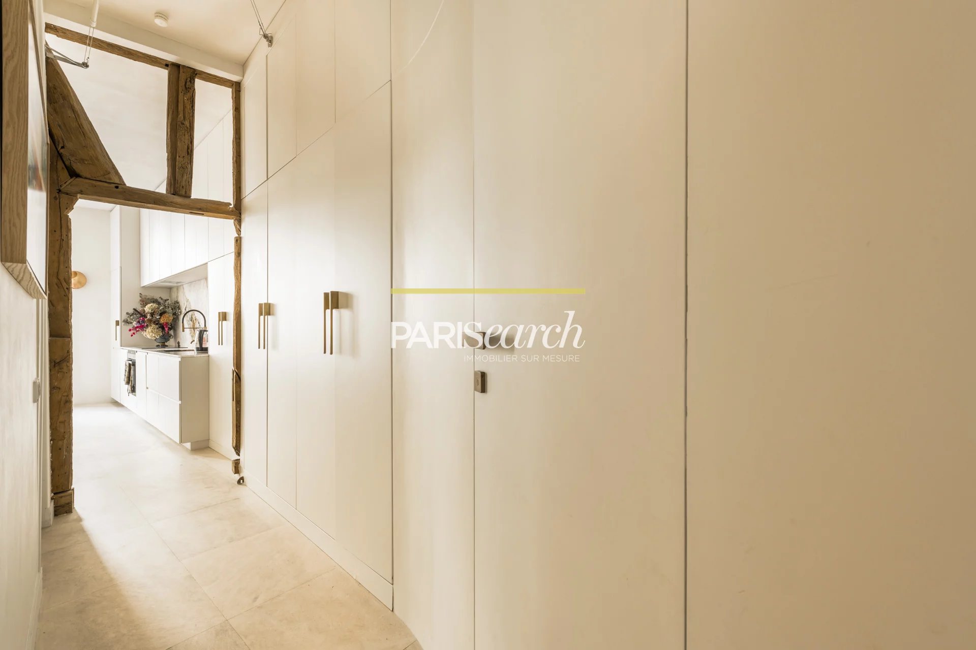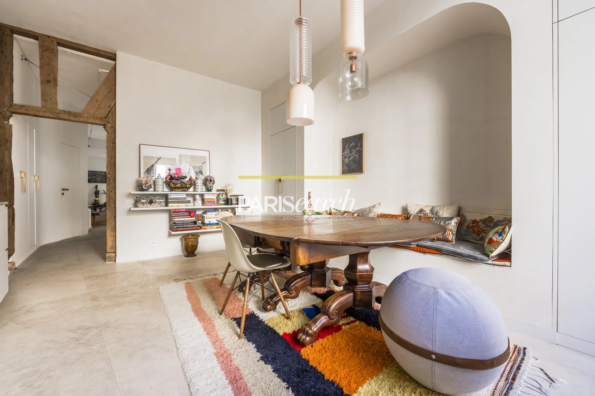 Ce bien rare séduit par ses volumes généreux, sa rénovation soignée et son atmosphère paisible, en plein cœur du Marais.