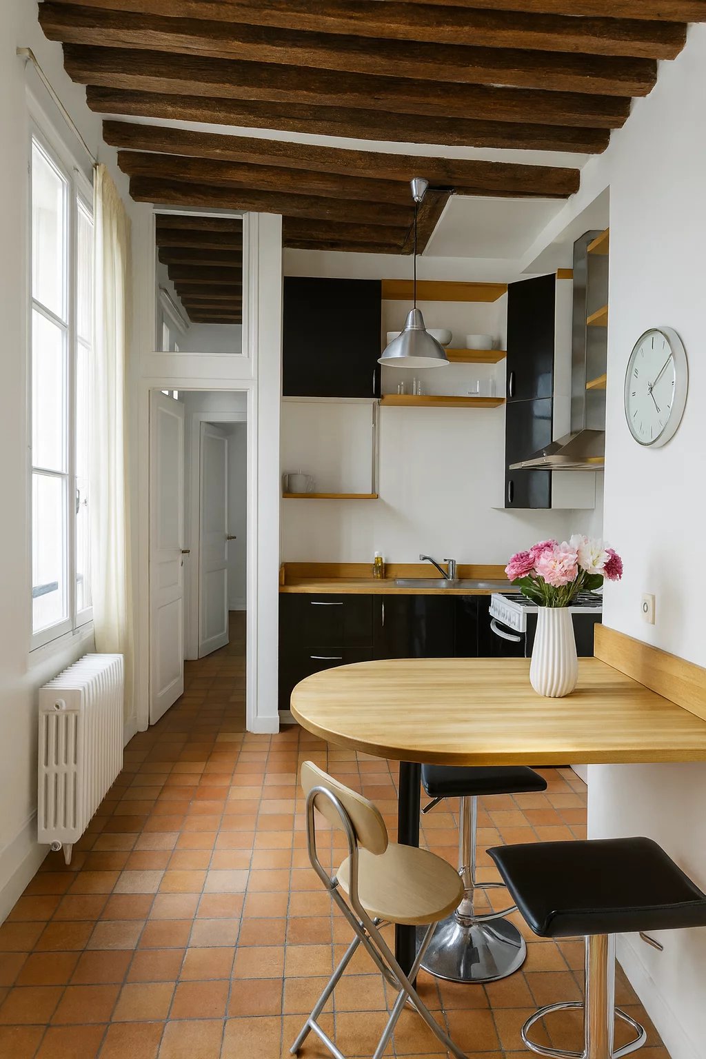 Dans un bel immeuble en pierre de taille, appartement DEUX PIÈCES composé d'une entrée avec rangements, d'une belle pièce de vie avec cuisine américaine, d'une chambre et d'une salle de bains ouverte, d'un WC séparé. Beaucoup de charme avec son parquet ancien, sa belle hauteur sous plafond et ses poutres apparentes. Lumineux et au calme sur cour! Cave et local vélo. Ravalement des parties communes à prévoir. Idéal investissement locatif ou résidence principale . Appartement occupé actuellement par un locataire : fin du bail meublé le 22 avril 2026.