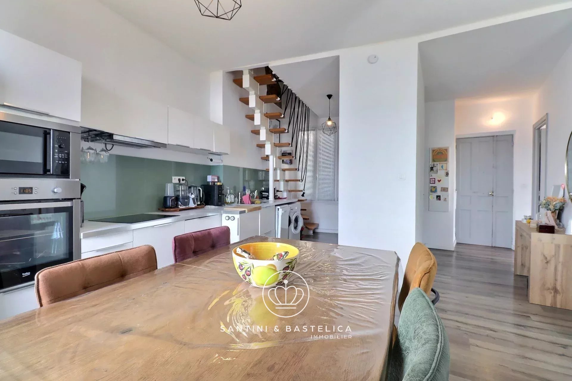 C'est perché au 5ème étage sans ascenseur que l'on retrouve ce bel appartement 3 pièces de 78m² habitable ( 61m² carrez) présenté par l'agence Santini & Bastelica Immobilier. Il se compose d'une entrée, un beau séjour avec cheminée en fonction, une cuisine avec coin salle à manger, une chambre et une salle d'eau / wc. À l'étage un coin bureau avec rangements et une chambre mansardée. Un beau balcon avec une vue panoramique sur le Golfe d'Ajaccio vous attends pour prendre un café ensoleillé ! À proximité immédiate de toutes commodités à pied ! Nombre de lots : 14 - Pas de procédures en cours À découvrir avec Olivier ALZIARI-SANTINI : 0613851266 - contact@santinibastelica.immo