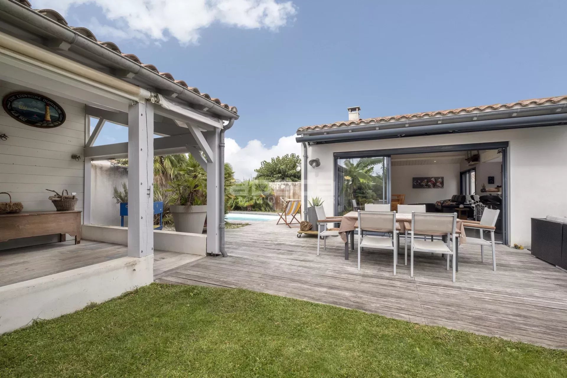 En exclusivité un ensemble de deux maisons indépendante avec piscine. A deux pas de l'église venez découvrir cette maison avec sa grande pièce de vie lumineuse ouverte sur la terrasse et la piscine, une cuisine aménagée et équipé, une arrière cuisine, 3 chambres, 1 salle d'eau, une salle de bains avec douche, 2 wc. Un grand préau d'été ouvert sur un jardin. deux stationnements. En annexe avec sa propre entrée indépendante sur un patio, une deuxième maison avec une pièce à vivre, 2 chambres, 1 salle d'eau, un wc. Configuration rare et intéressante à voir !