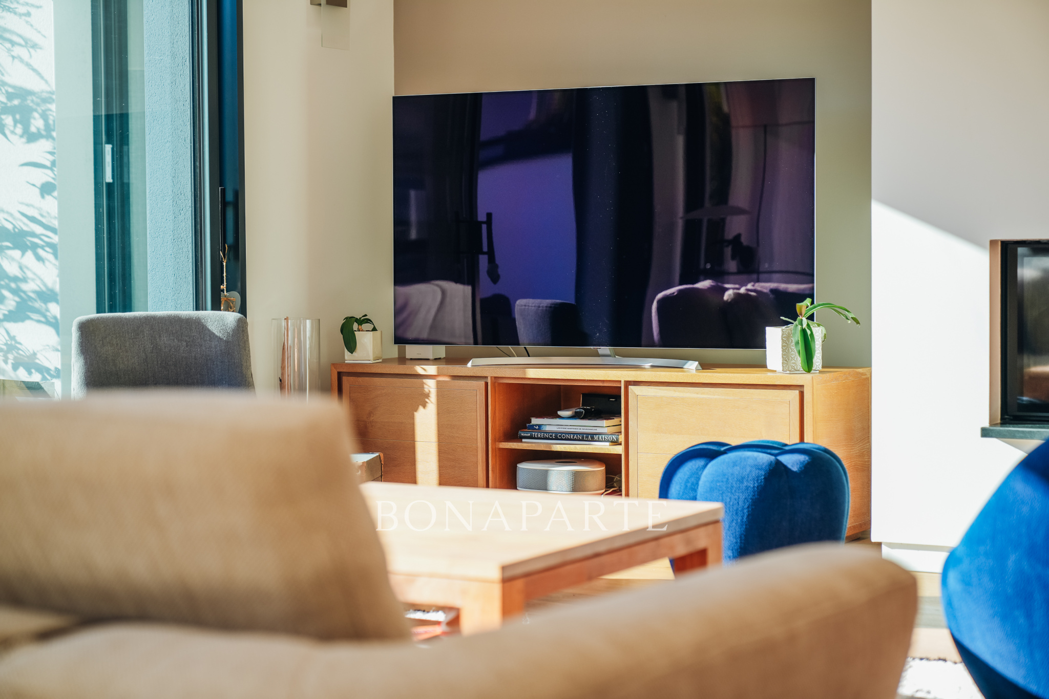 D'une surface habitable de 230 m2, elle s'ouvre sur une majestueuse pièce de vie de 76 m2, sublimée par une cheminée Rüegg, et une cuisine américaine aménagée et équipée, pensée pour les instants de convivialité. L'espace se prolonge naturellement sur une terrasse de 60 m2, invitant à savourer les beaux jours.