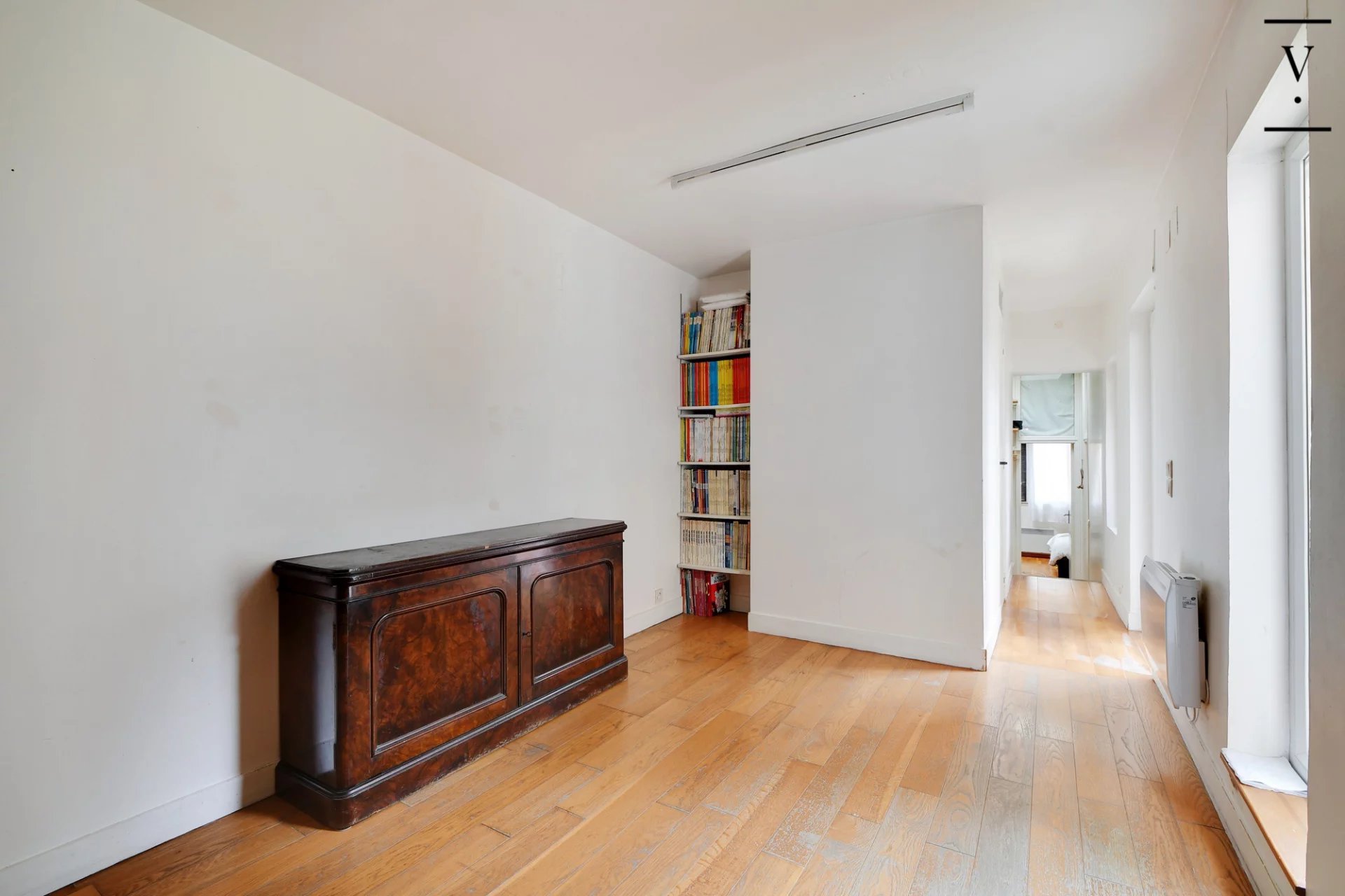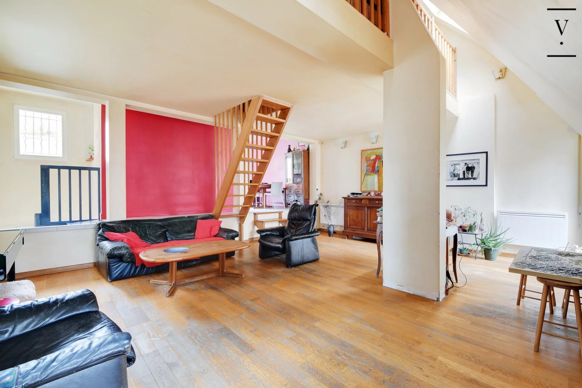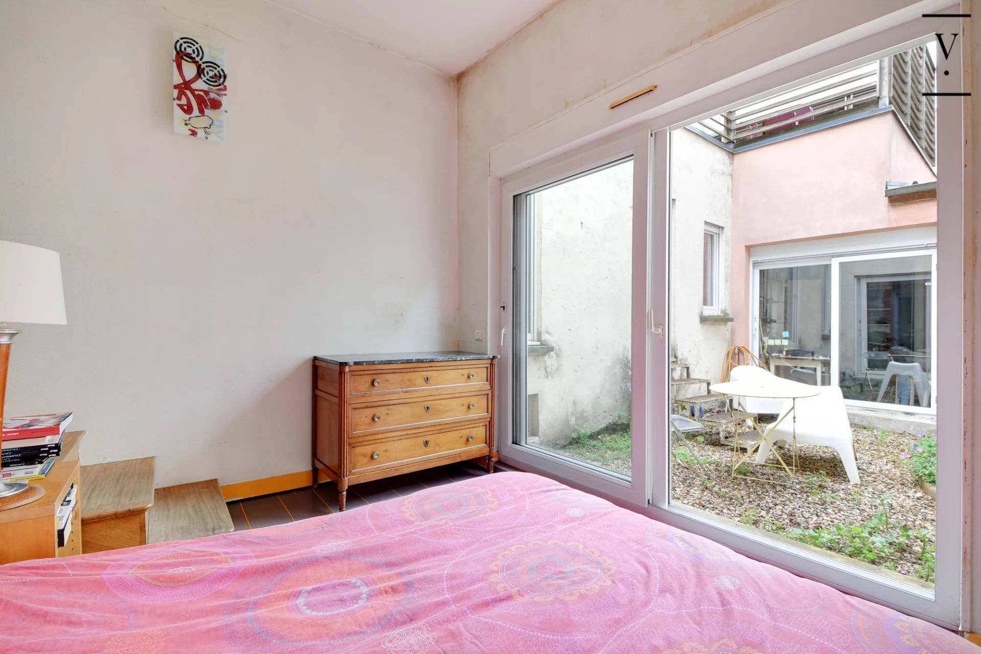 Villaret Immobilier vous propose, à deux pas des Buttes-Chaumont, une maison rare nichée dans un passage discret et plein de charme. Ce bien atypique se distingue par ses volumes généreux et son fort potentiel. Il comprend six chambres, deux salles de bains, une salle d’eau, un vaste séjour prolongé par une cuisine semi-ouverte, un bureau en mezzanine, deux terrasses, un jardin intimiste et une cour intérieure. À rénover intégralement, la maison offre un plan modulable, idéal pour imaginer un aménagement sur mesure, en accord avec votre mode de vie. Deux grandes caves d’environ 50 m² et un garage à vélos privatif complètent ce bien.