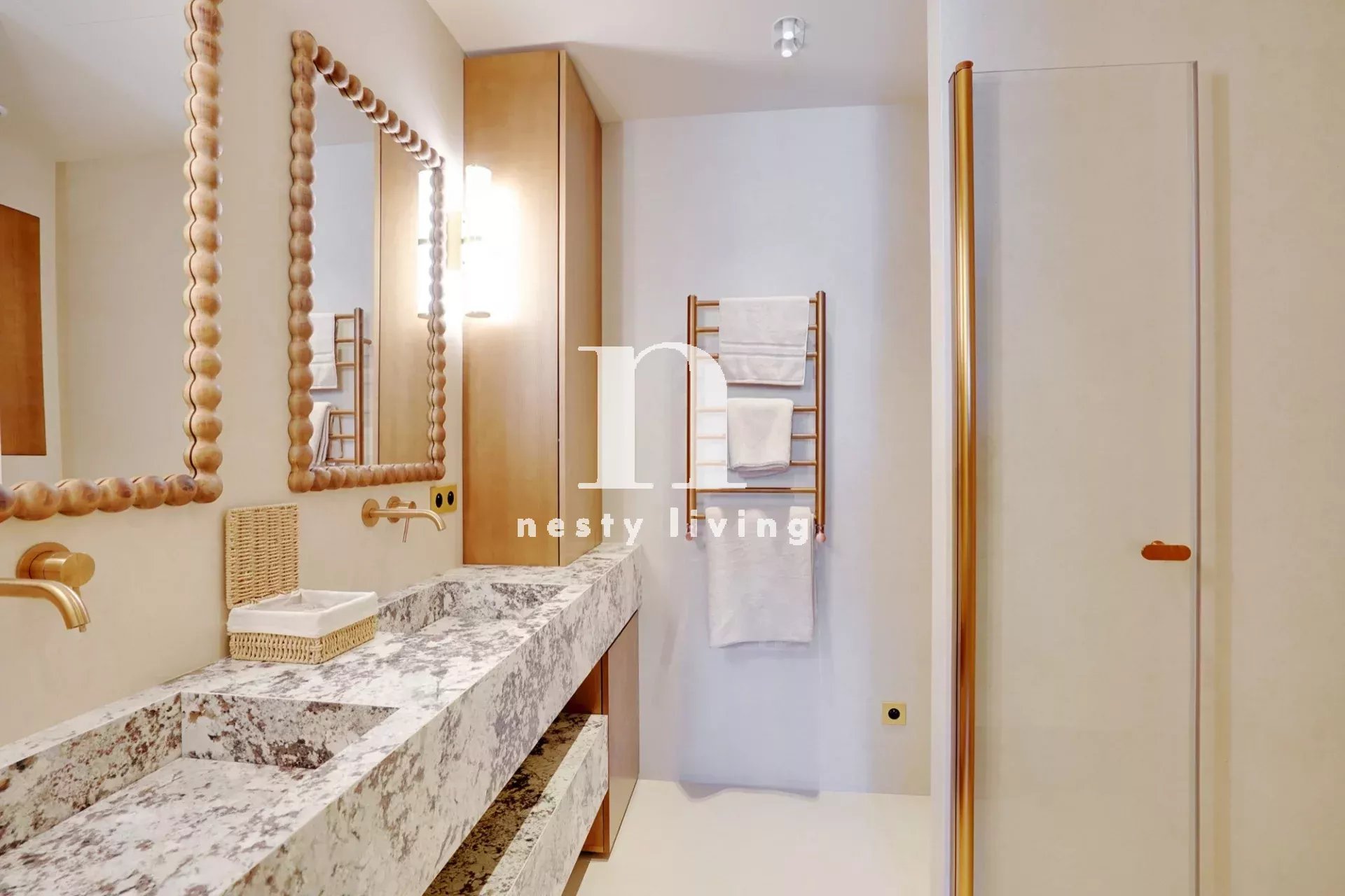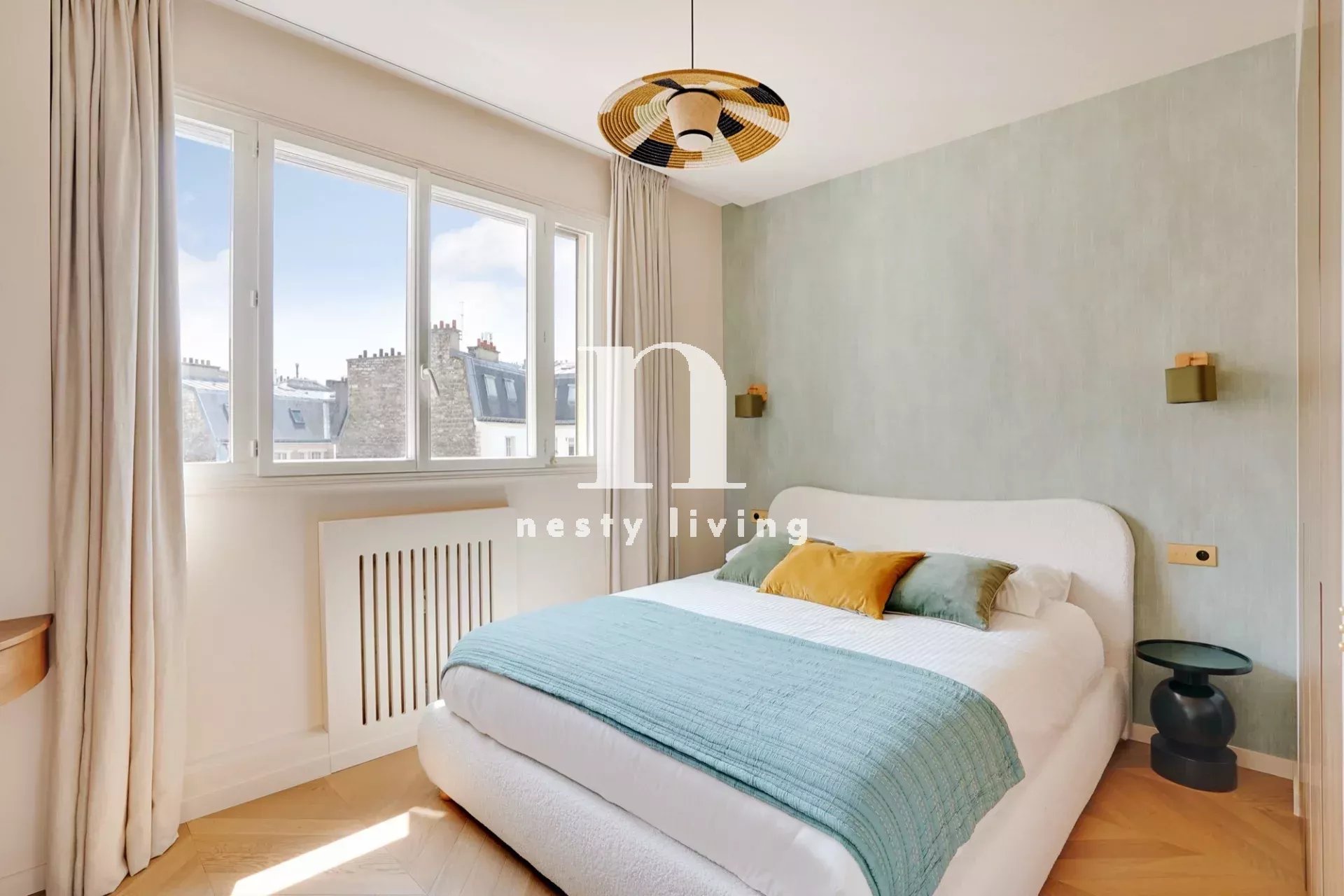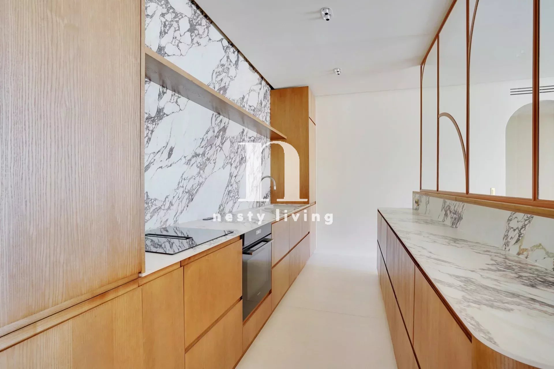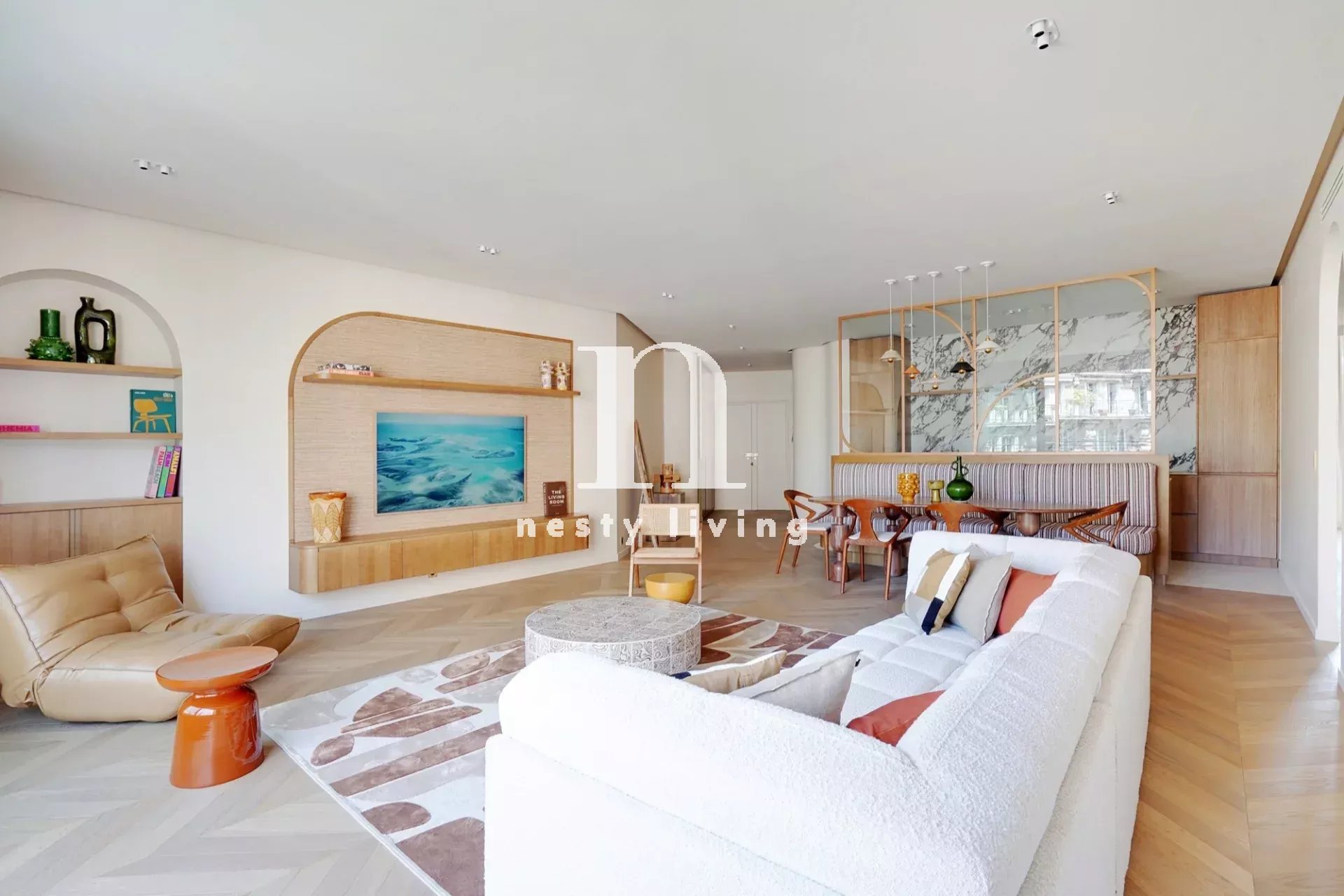 Dans un élégant immeuble en pierre de taille des années 50, découvrez ce somptueux appartement refait à neuf avec des matériaux haut de gamme, alliant raffinement et confort moderne.