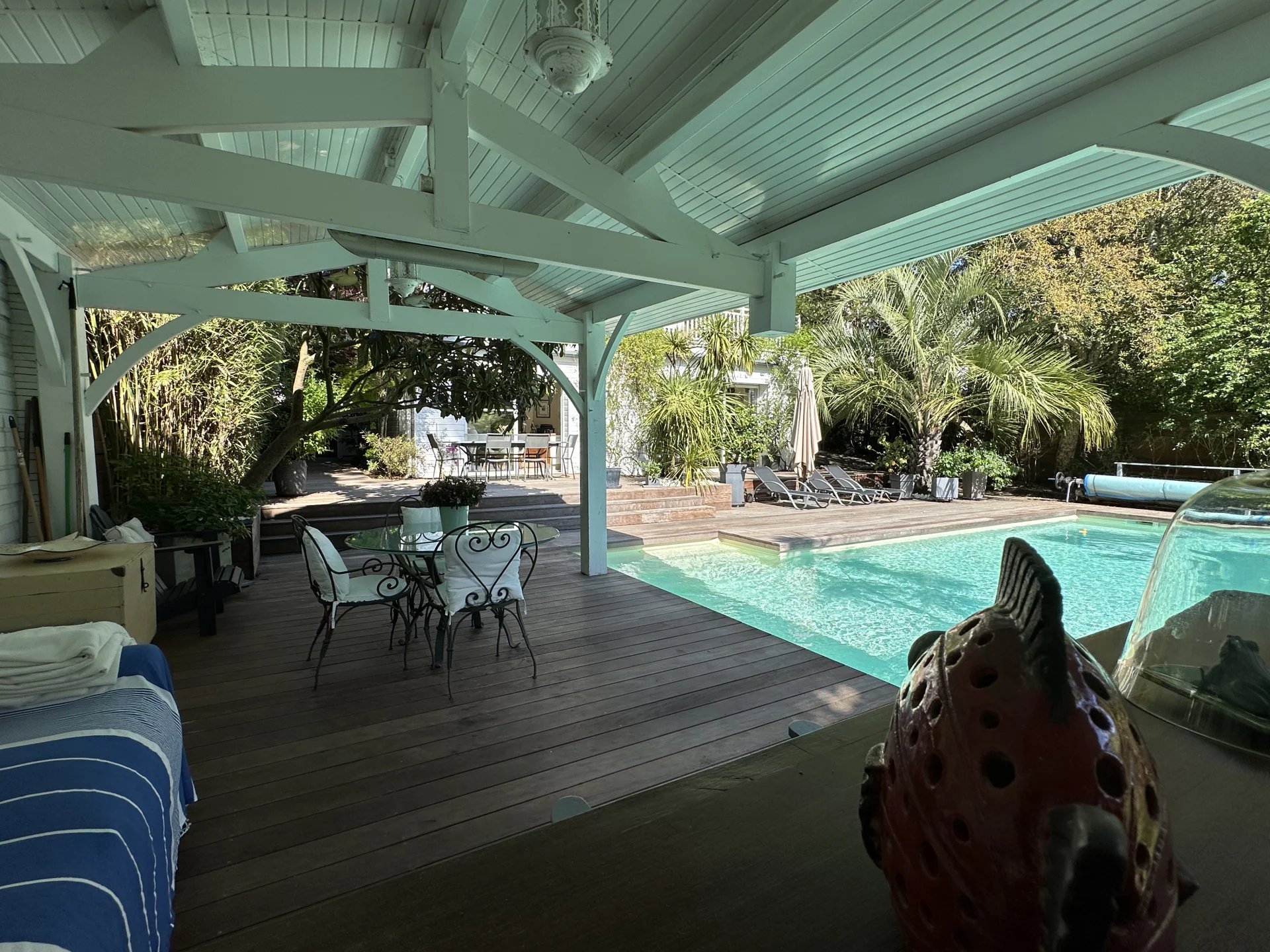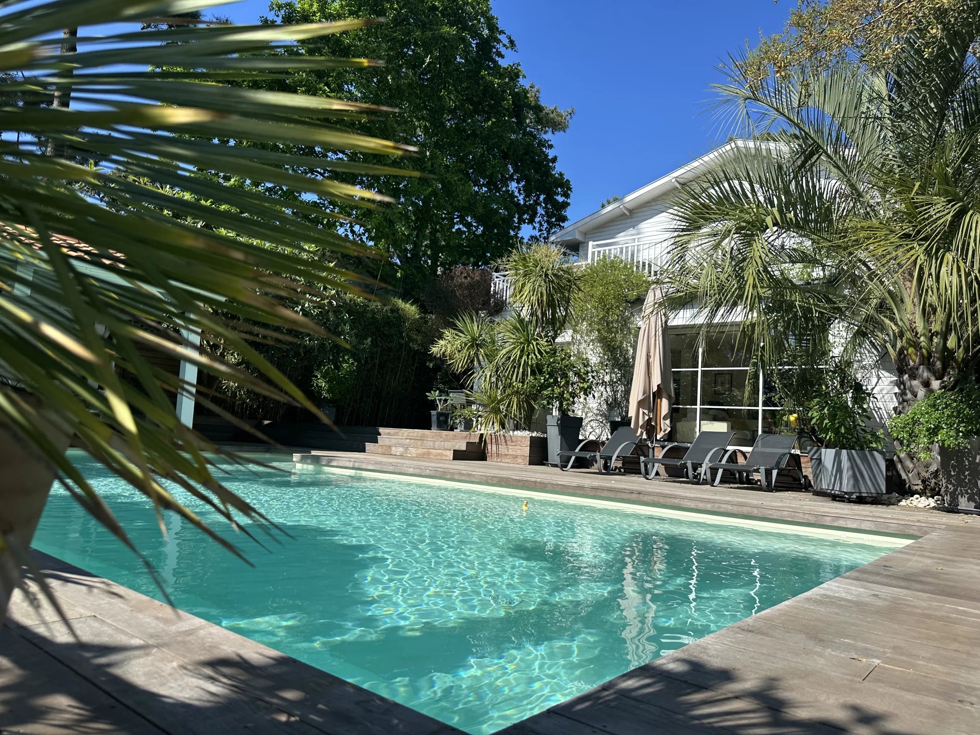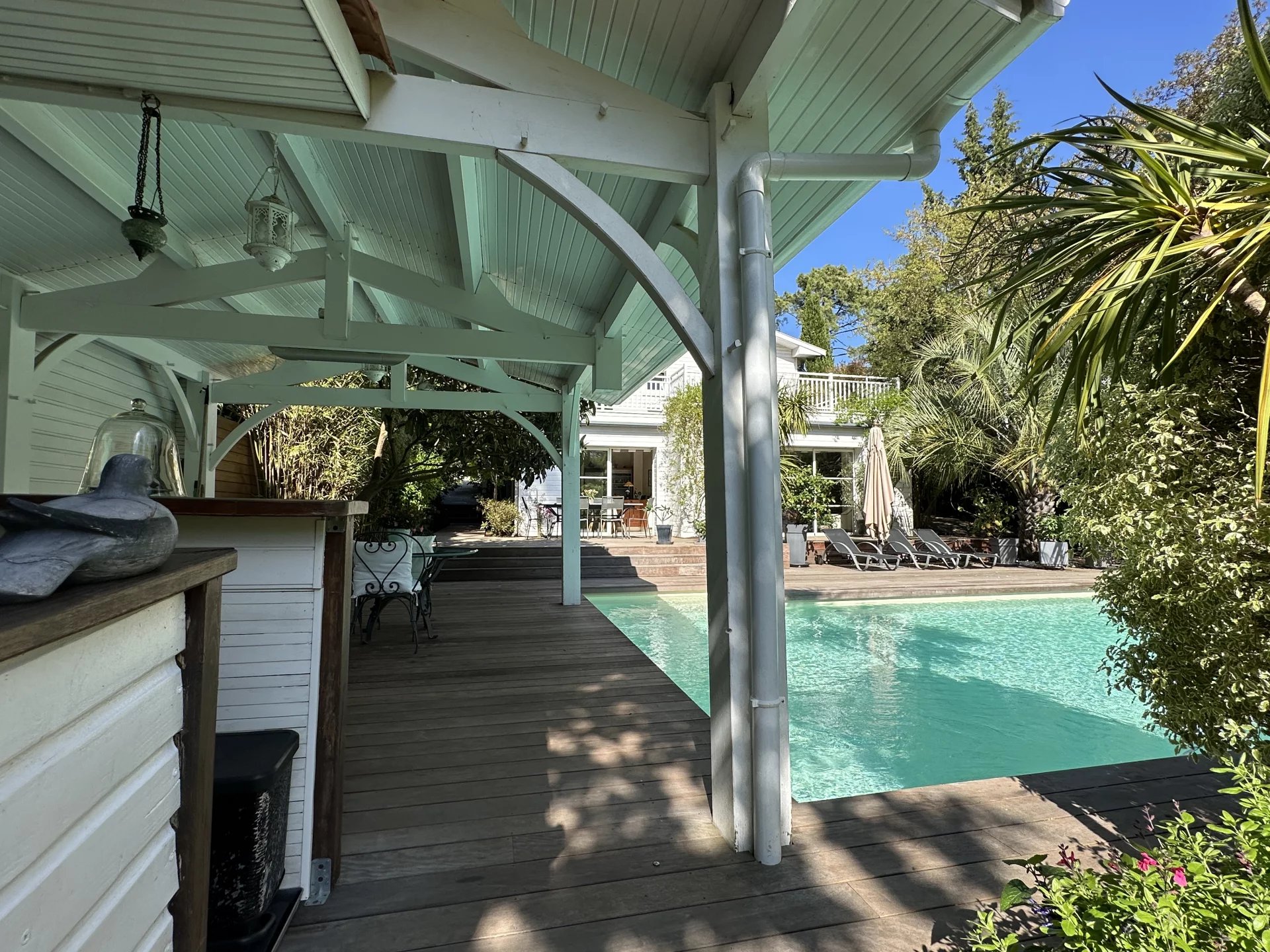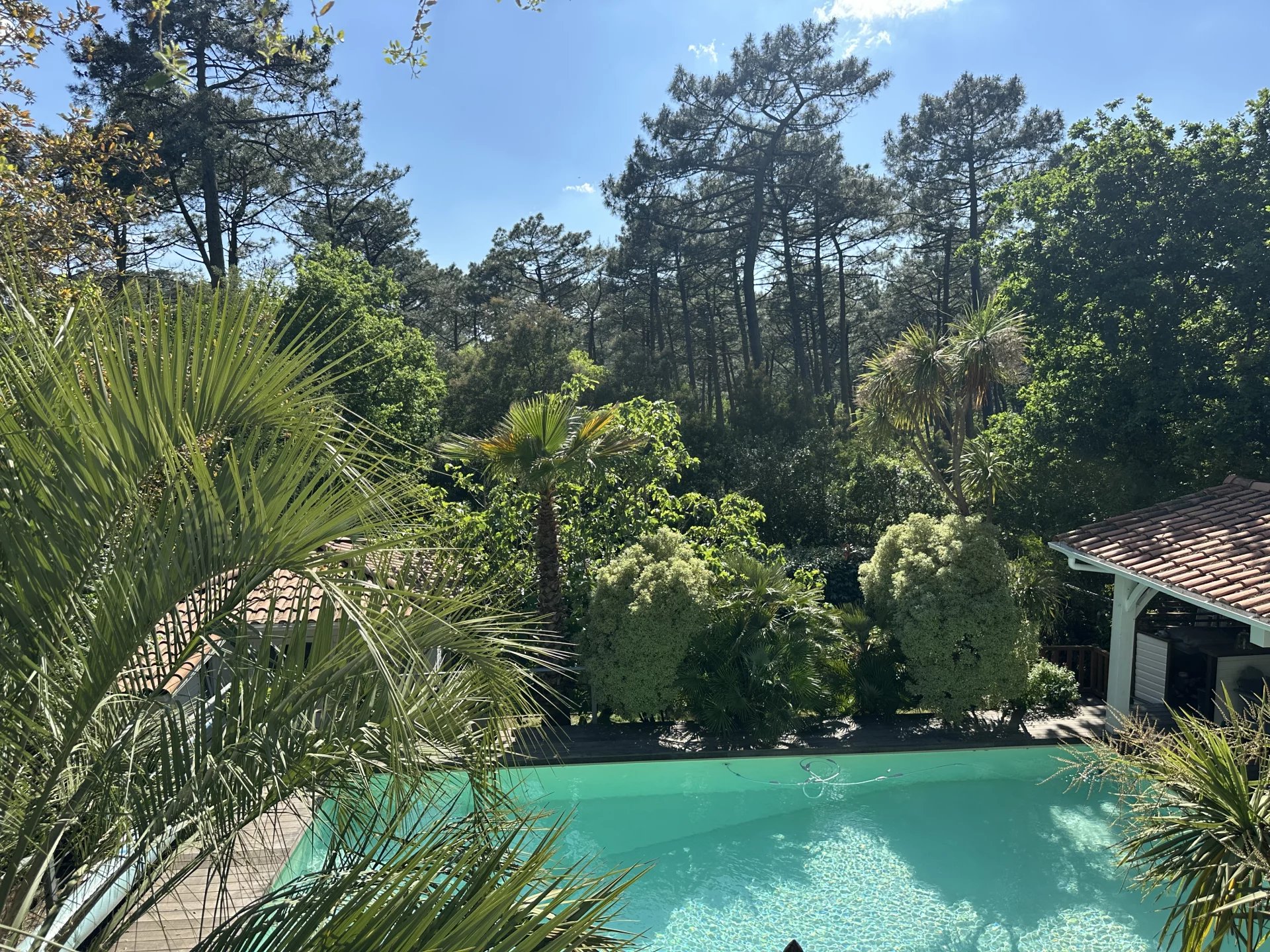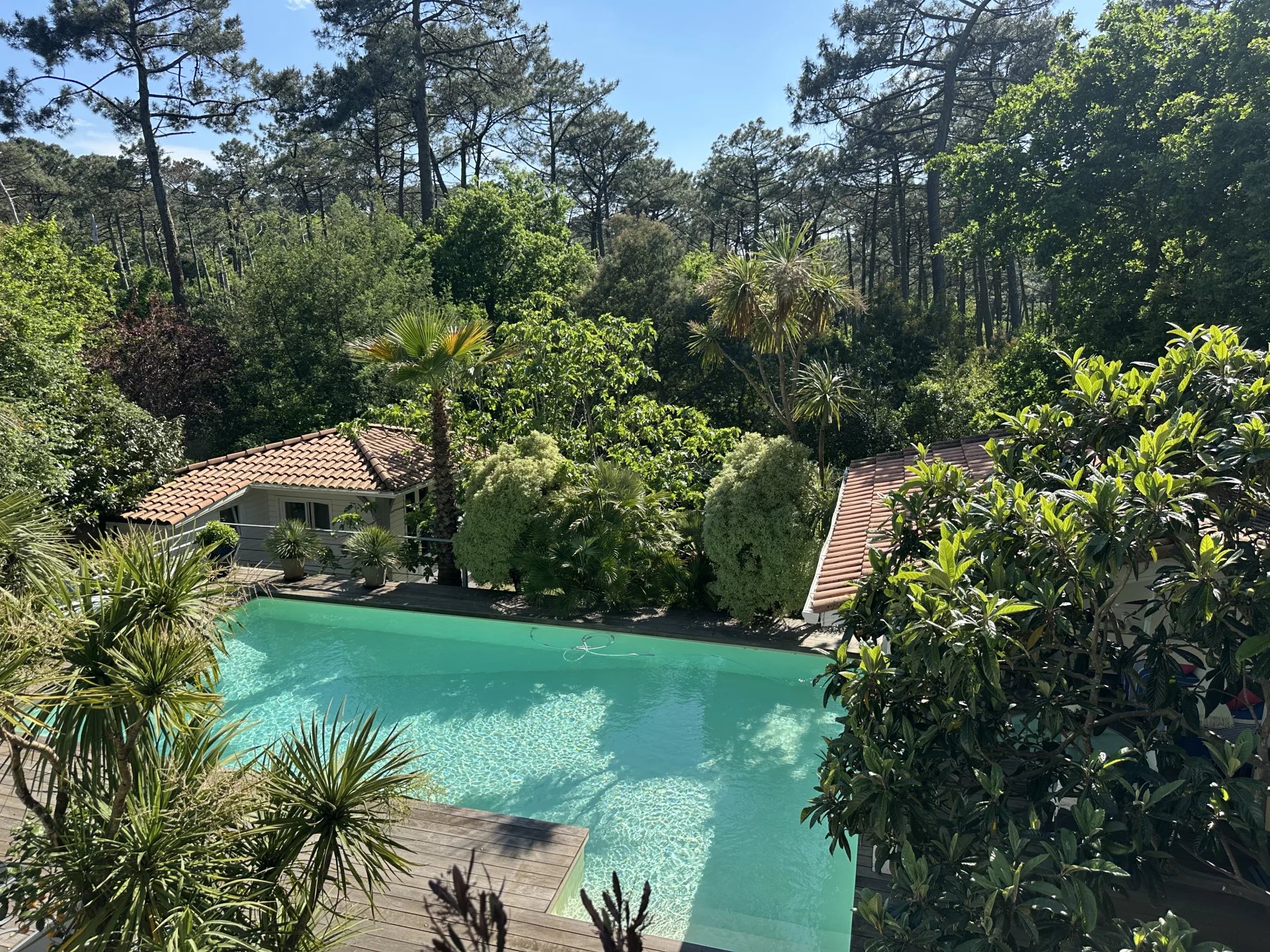 Nichée au cœur de la forêt du Pyla, cette propriété offre une vue imprenable sur l'étendue verdoyante de la pinède. Bénéficiant d'une position dominante, cette maison vous promet une intimité préservée sans vis à vis. L'ensemble se compose de 3 bâtiments distincts agencés avec goût: La maison principale vous accueille avec une vaste pièce de vie, une cuisine ouverte , un salon avec poêle, une salle à manger et un grand bureau. A l'étage, trois chambres dont une suite parentale avec dressing. Une charmante dépendance offre une chambre supplémentaire, idéale pour accueillir des invités en toute indépendance. La seconde dépendance, véritable invitation à la détente; abrite une cuisine d'été et un salon convivial qui s'ouvre directement sur une magnifique piscine parfaitement orientée. Le jardin élégant et majestueux, bénéficie d'un accès direct à la forêt. Cette propriété en très bon état général, profite d'un emplacement idéal près du golf et des commerces. La plage est à 10 minutes à vélo. Les informations sur les risques auxquels ce bien est exposé sont disponibles sur le site https://errial.georisques.gouv.fr/#/