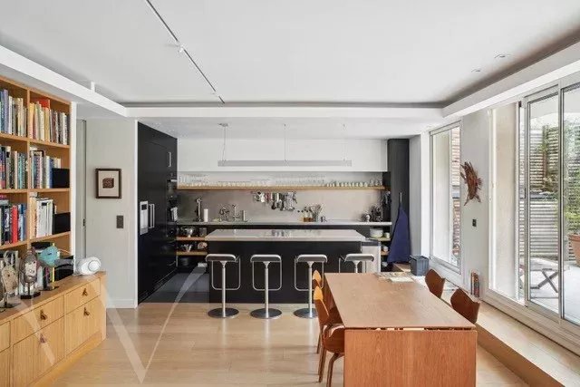 A deux pas du Bon Marché, à Saint Germain des Près, dans une jolie copropriété élevée en 1975, bien entretenue, un appartement au 2e étage par ascenseur de 101,17 m² loi carrez et jardin de plain-pied de 110 m², il se compose d'une double réception avec cuisine ouverte ouvrant sur la terrasse, une suite de maître sur jardin (avec salle de bain complète); une seconde chambre avec salle de douche et toilette. Climatisation réversible. Parfait état, calme absolu, orientation sud-ouest.