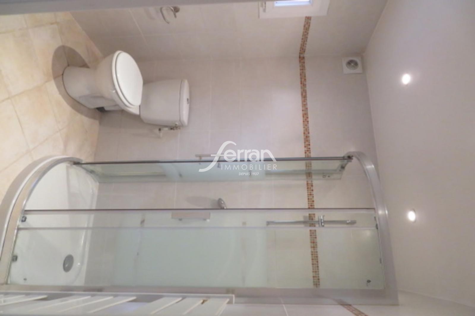 En centre ville, Type 2 de 45 m² en rez-de-chaussée et garage. L'appartement se compose d'une entrée, séjour, cuisine US aménagée, chambre, salle d'eau et WC.