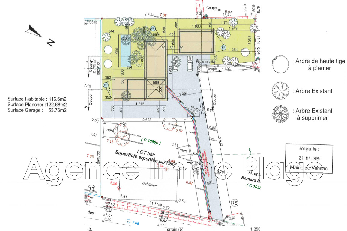 Un permis est déja accordé pour une maison de 116 m² et un garage de 53 m² (plans sur demande).