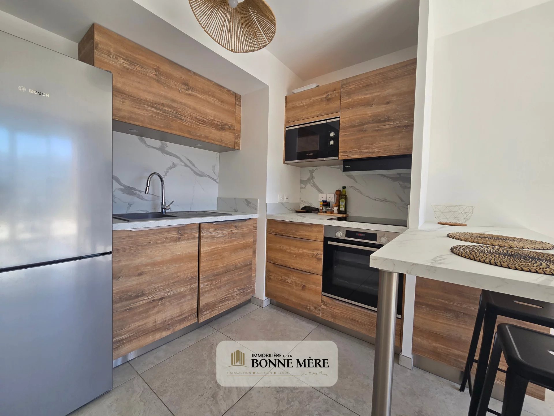 L'IMMOBILIERE DE LA BONNE MERE vous présente en exclusivité ce superbe appartement T2 de 40 m² avec terrasse de 11 m² avec une vue mer et colline, et une place de parking en sous-sol.