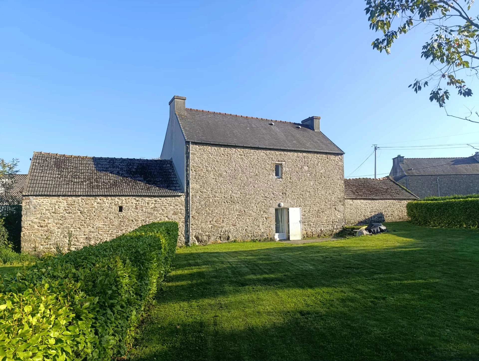 Ar Vro Immobilier vous présente cette nouvelle maison située en campagne mais à 5 minutes en voiture du bourg de Guipavas et de ses commodités. Laisser vous charmer par cette ferme rénovée en 2008. Vous trouverez au rez de chaussée la cuisine ouverte sur la pièce de vie donnant sur le jardin. A ce niveau vous trouverez également une salle d'eau et un WC indépendant. A l'étage : 3 chambres et un WC indépendant. Deux dépendances sont accolées à la maison ce qui vous offre un potentiel d'extension de plus de 70 m² ! Ce bien possède une troisième dépendance, le tout sur un terrain d'environ 1500 m². Cadre d'exception, le calme de la campagne aux portes de la ville. N'hésitez pas à nous contacter pour une visite.