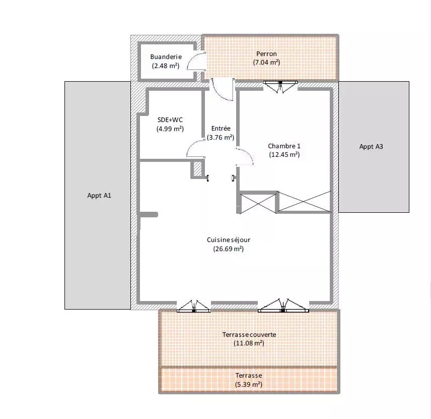 Cet espace de vie lumineux a été conçu avec des matériaux de qualité, assurant un cadre agréable au quotidien. Vous profiterez d’une cuisine entièrement équipée, d’une grande baie vitrée, de menuiseries en PVC avec double vitrage ainsi que de la climatisation, garantissant un confort optimal en toute saison.
