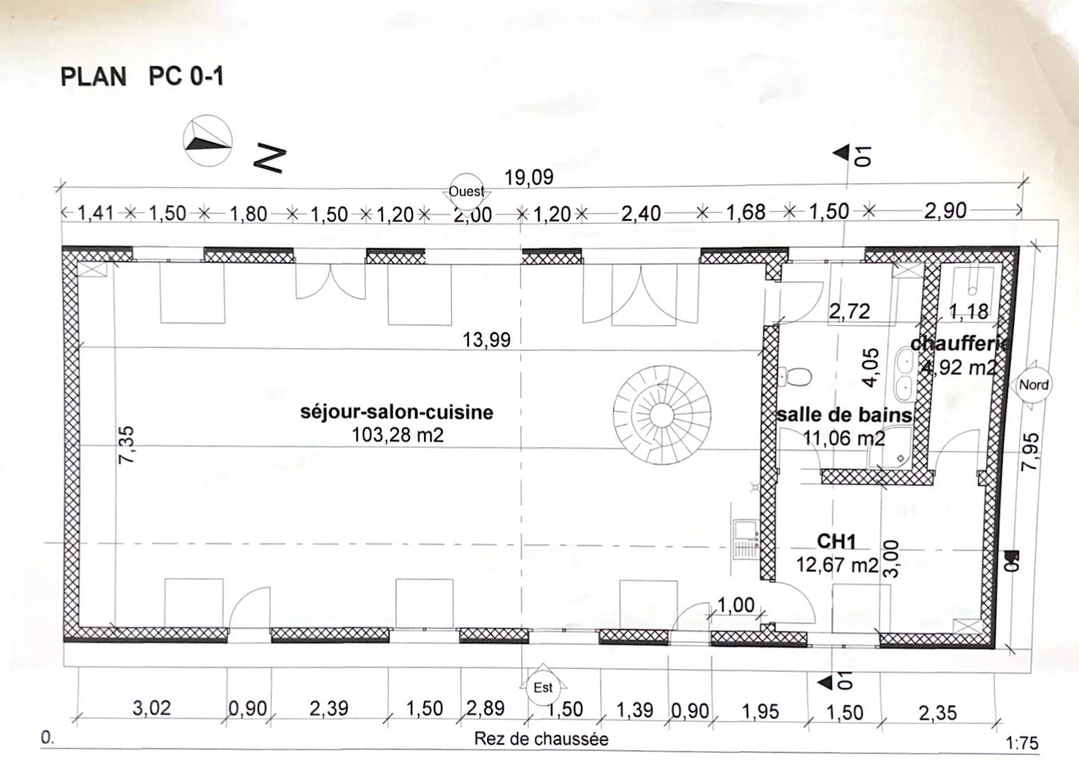 Exposé à l'Est, un grand bâtiment avec couverture neuve (2025), divisé en 3 parties au rez de chaussée d'une surface totale de 160m2 (80+40+40)+ étage aménageable.