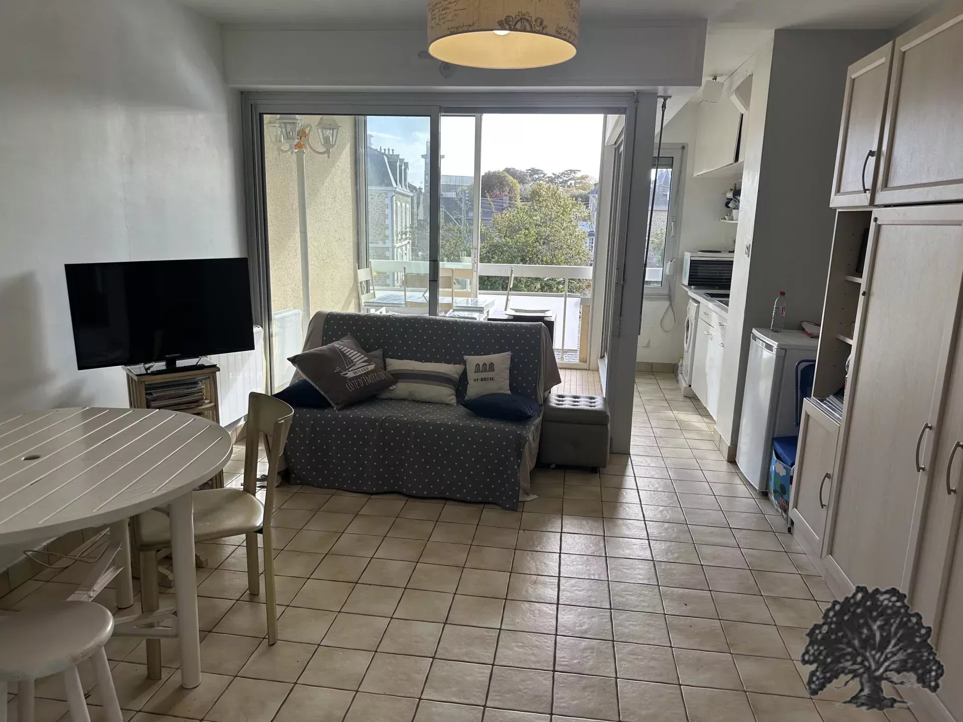 Au troisième étage d’une résidence de standing située entre l'Eglise du Prieuré et la Mairie de Dinard, ce grand studio de 28,81 m² comprend une entrée, une pièce de vie avec coin cuisine donnant sur une loggia exposée plein sud, une salle de bains et des WC. Le studio est vendu avec le lit mural 140. Un cellier au même étage et une place de stationnement complètent l'appartement. Ce bien vous séduira par sa vue et son emplacement idéal au calme.