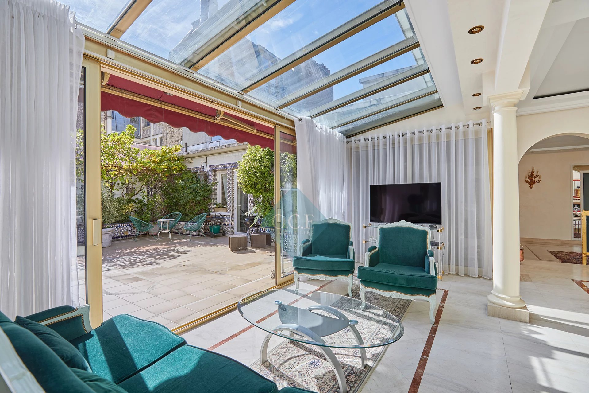 D’une superficie de 255 m², il s’ouvre sur une superbe terrasse plein sud de 72,30 m², sans aucun vis-à-vis, offrant une luminosité exceptionnelle et un calme absolu.