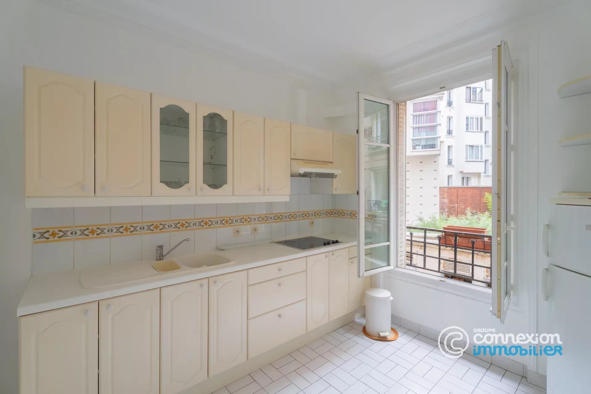 A proximité immédiate du métro et des commerces. Dans un bel immeuble en pierre de taille avec ascenseur, au ravalement voté (à la charge du vendeur), parties communes bien entretenues. Un appartement en très bon état de plus de 49 m² carrez disposant d'une distribution en plan en étoile. Il est composé d'une entrée, un séjour, une grande cuisine dinatoire, une chambre, un dressing, une salle de bains et wc séparés. Aménageable en séjour cuisine ouverte et deux chambres, ou en double séjour/cuisine et une chambre. Charme de l'ancien : parquet et moulures. Lumineux et ensoleillé, exposition Sud/Ouest, vue dégagée pour le séjour. L'immeuble dispose d'un ascenseur et d'un local vélos / poussettes. Une cave complète ce bien.
