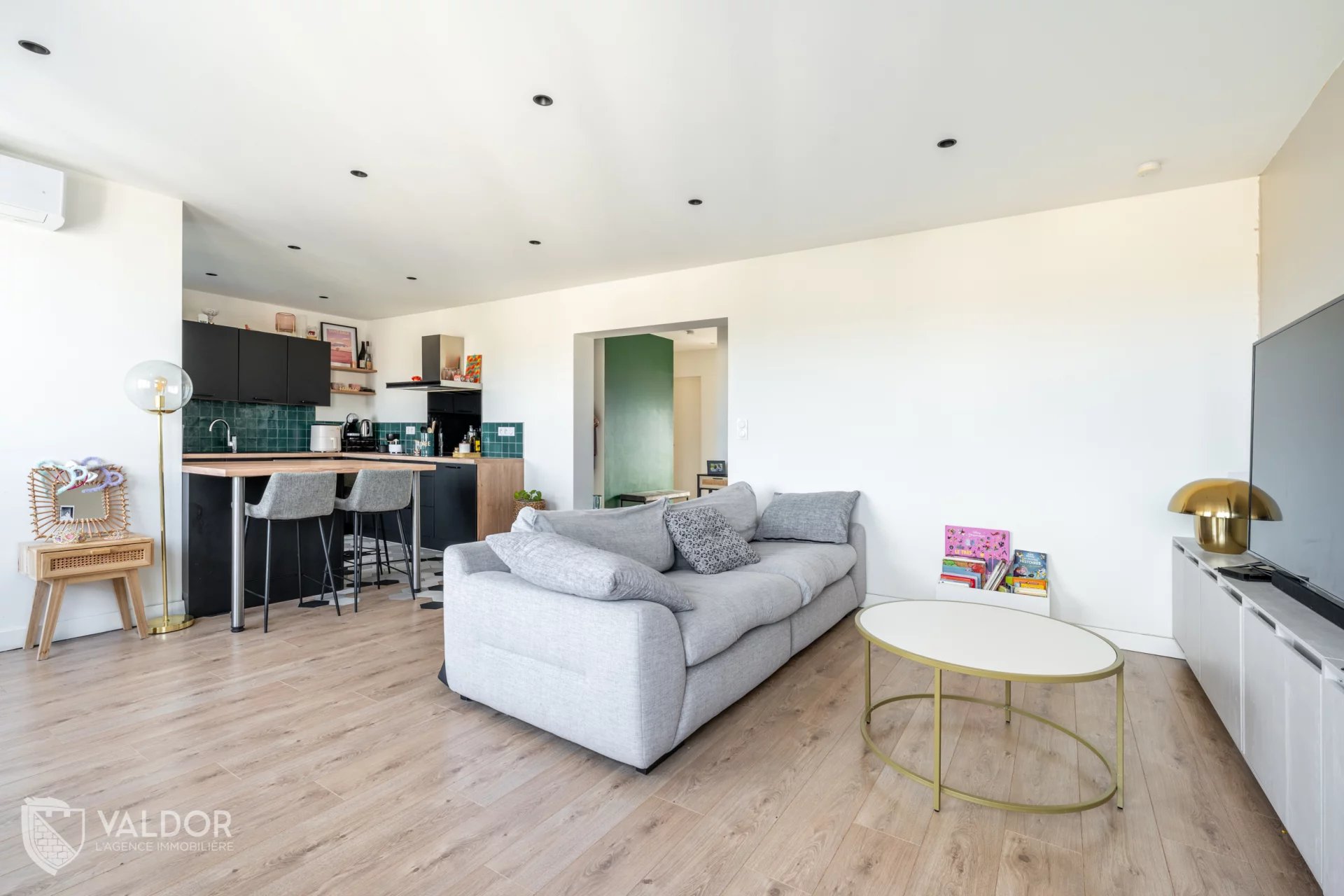 Vous retrouverez une agréable pièce de vie d’environ 35m² ainsi que deux chambres d’environ 10m².