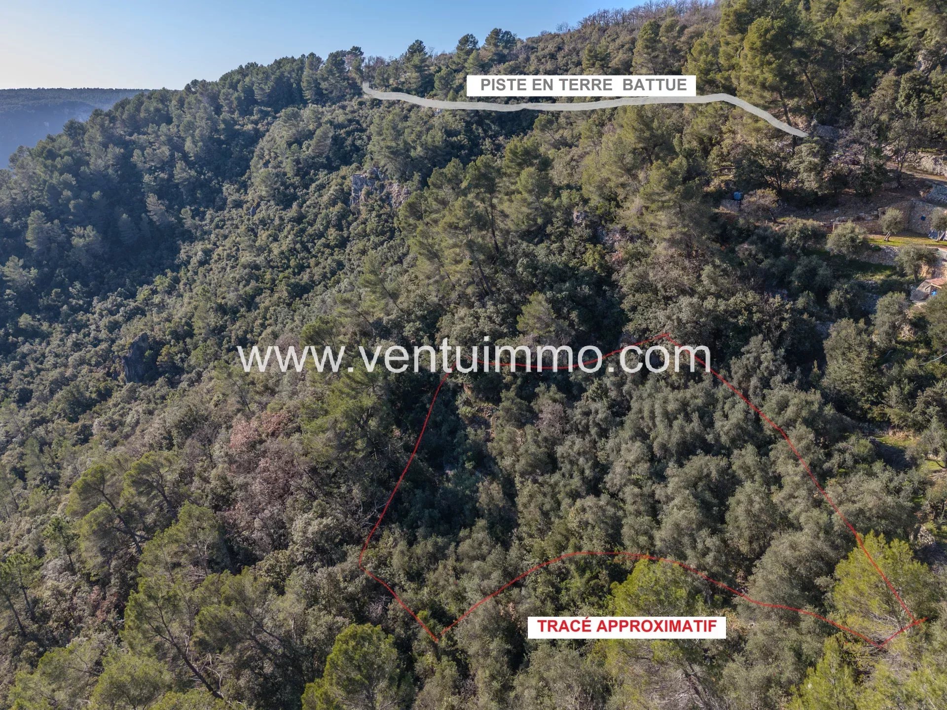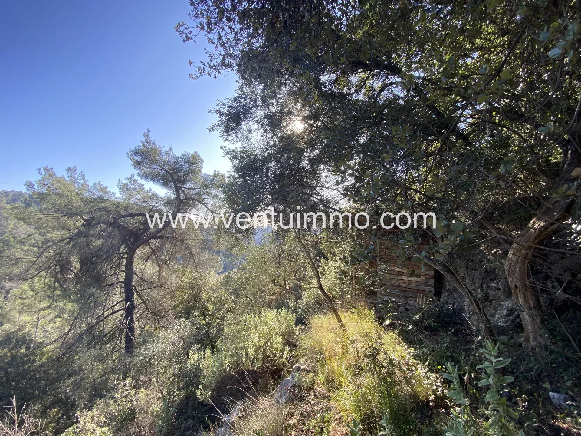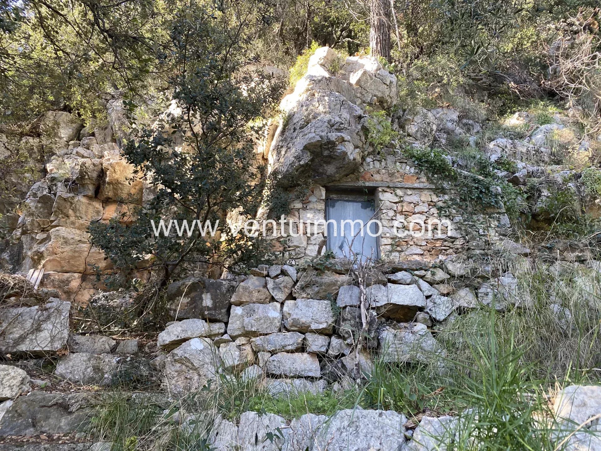 SAINT CEZAIRE SUR SIAGNE: Terrain 1371m2 Au calme absolu, terrain de 1371m2 non constructible. Vue dégagée, exposition sud. Petites restanques. Cabanon en bois (non cadastré) et petit abri fermé sous roche. Fort dénivelé (pente 54%). Idéal loisir ou chasse ou pour adhérer à l'ACCA SAINT CÉSAIRE. Accès par piste en terre battue et chemin.