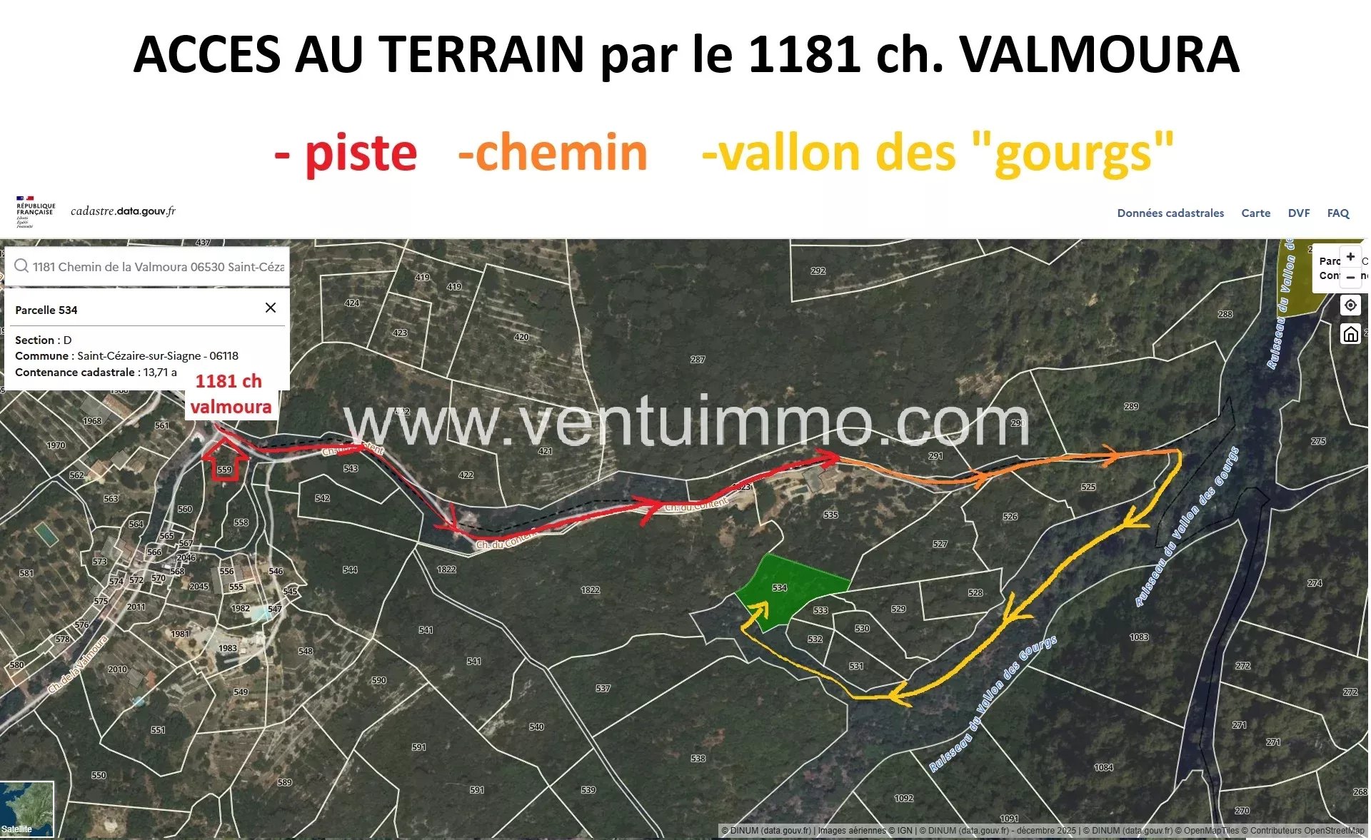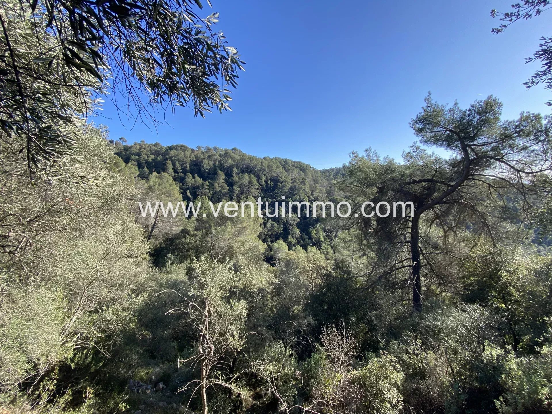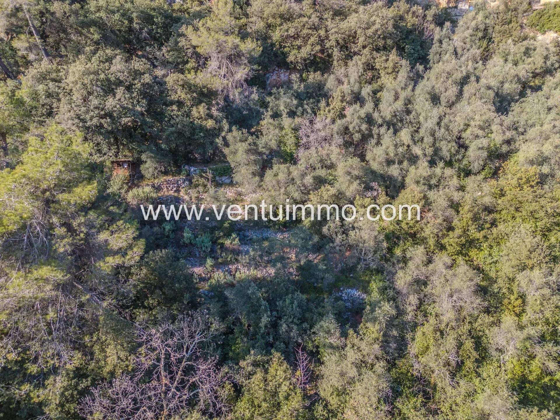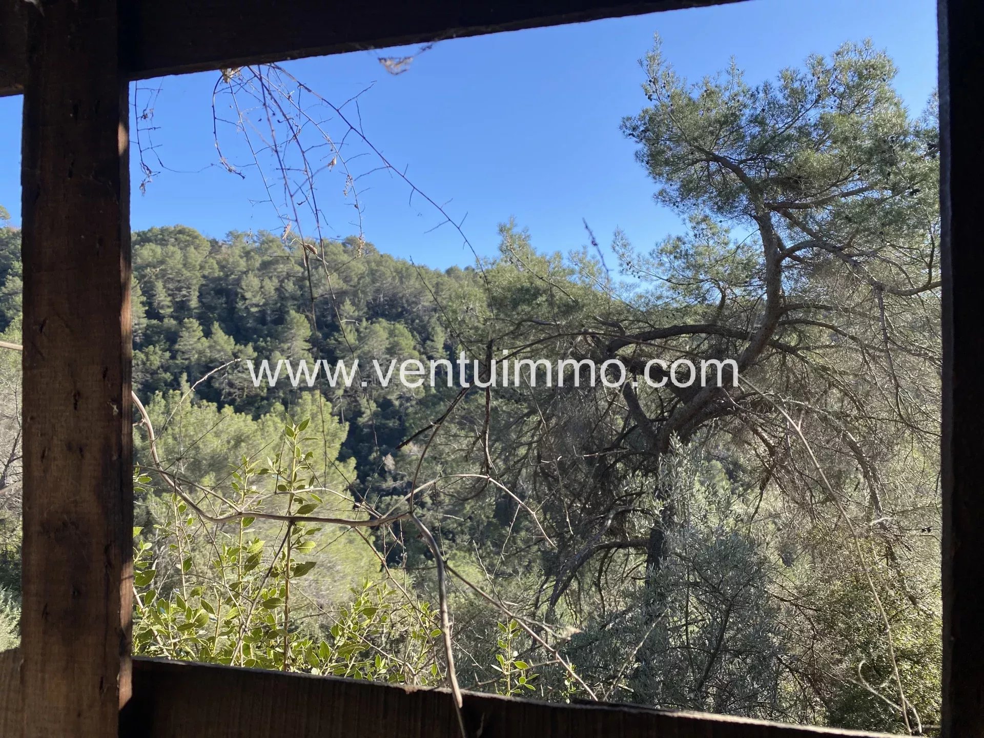 SAINT CEZAIRE SUR SIAGNE: Terrain 1371m2 Au calme absolu, terrain de 1371m2 non constructible. Vue dégagée, exposition sud. Petites restanques. Cabanon en bois (non cadastré) et petit abri fermé sous roche. Fort dénivelé (pente 54%). Idéal loisir ou chasse ou pour adhérer à l'ACCA SAINT CÉSAIRE. Accès par piste en terre battue et chemin.