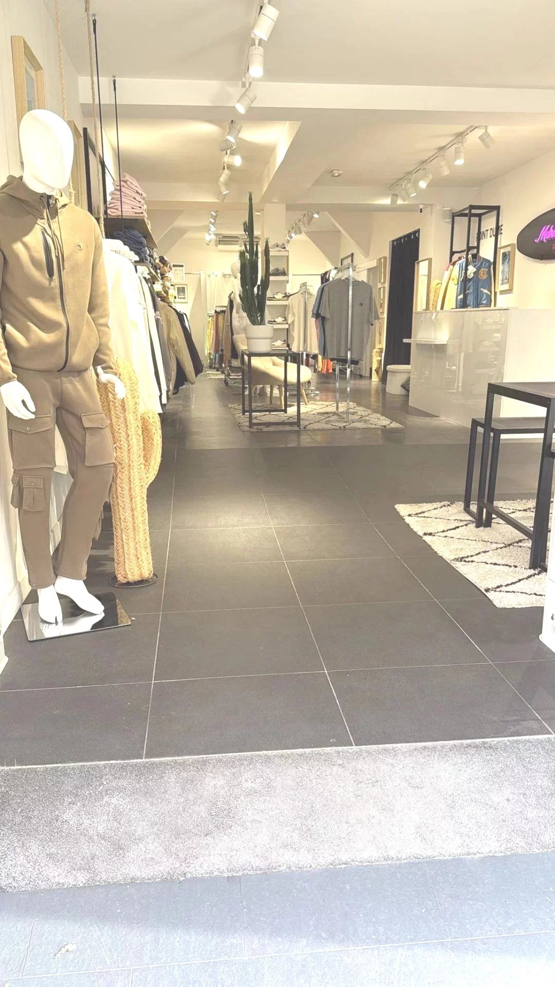 Situé au rez-de-chaussée d’un immeuble récemment ravalé, le local développe une surface totale d’environ 183 m², répartie sur deux niveaux reliés par un escalier intérieur :