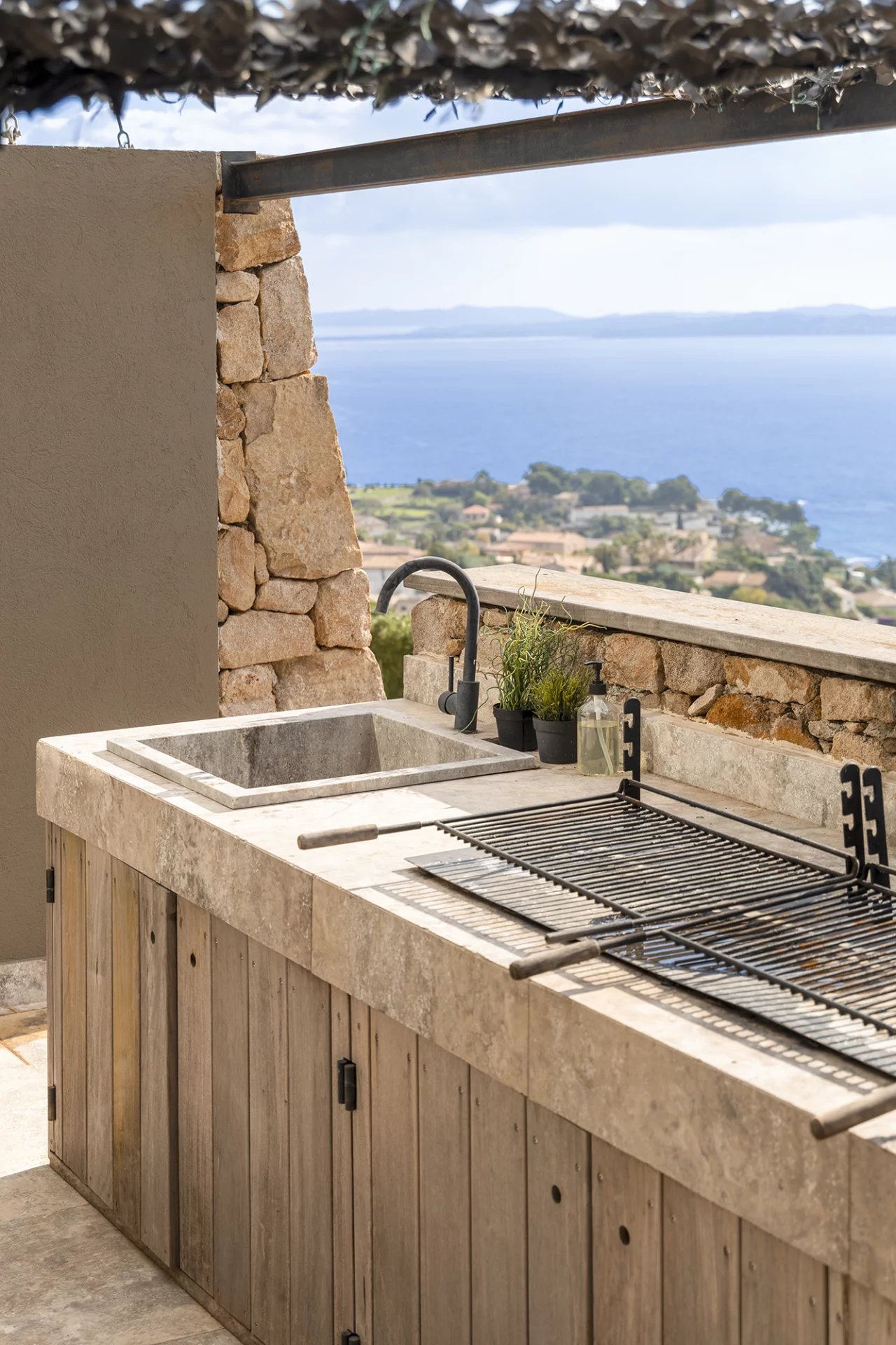Édifiée sur un terrain en restanques de 2 000 m², la propriété offre des espaces extérieurs soigneusement structurés, faciles à entretenir et conçus pour profiter pleinement du panorama.