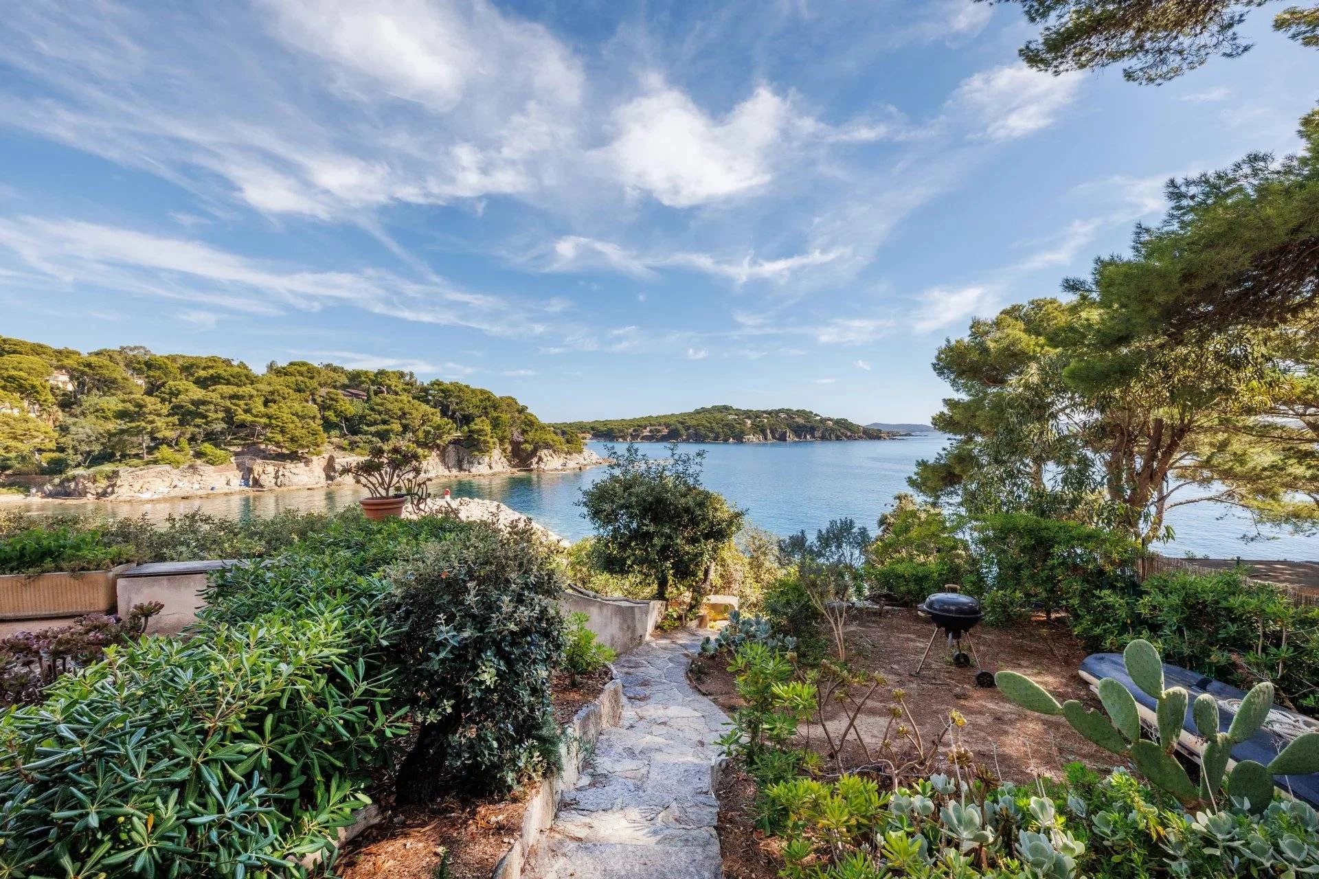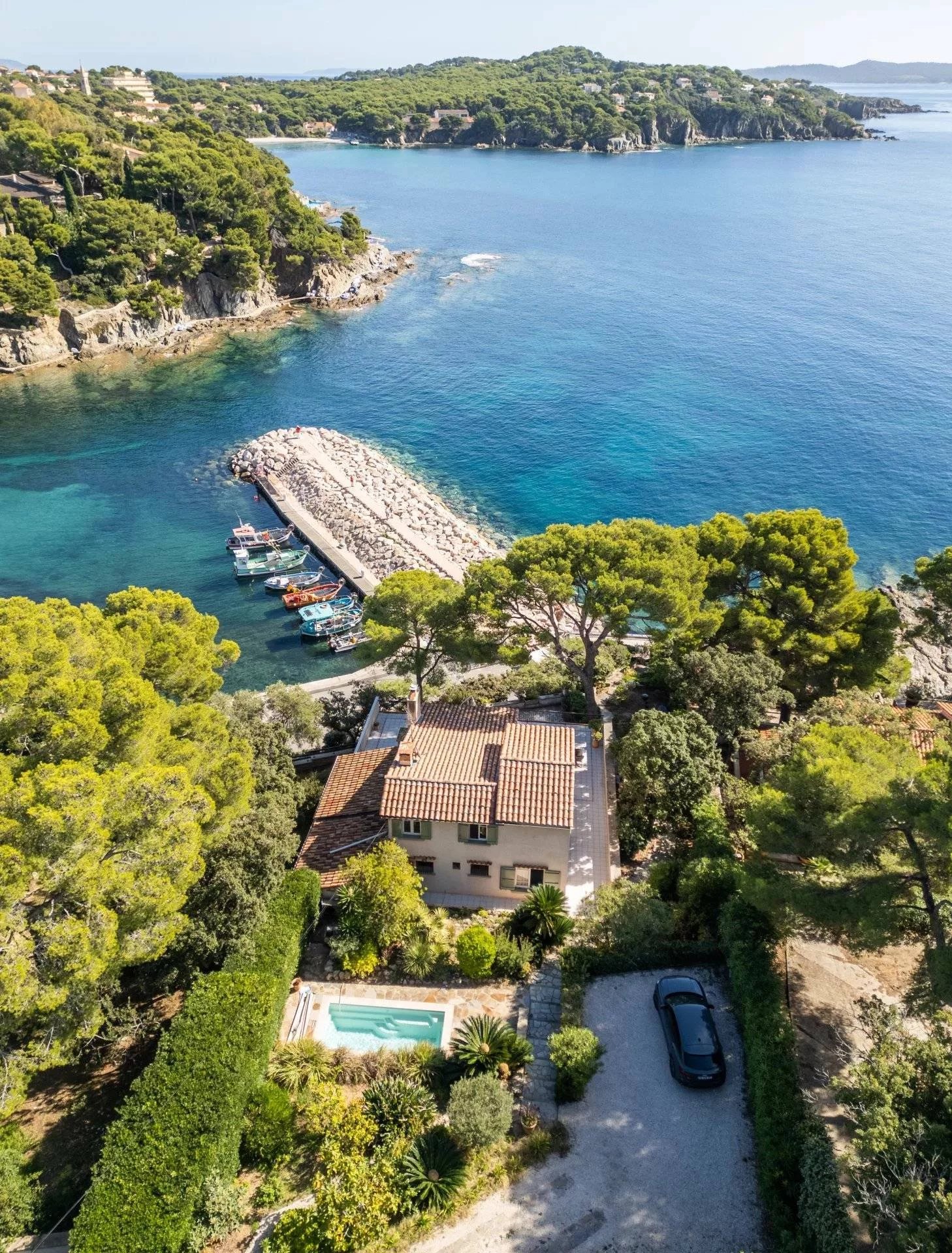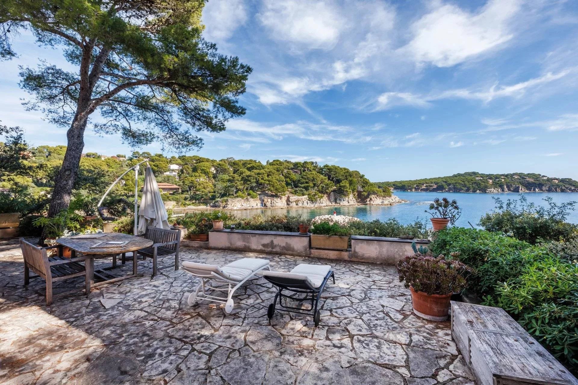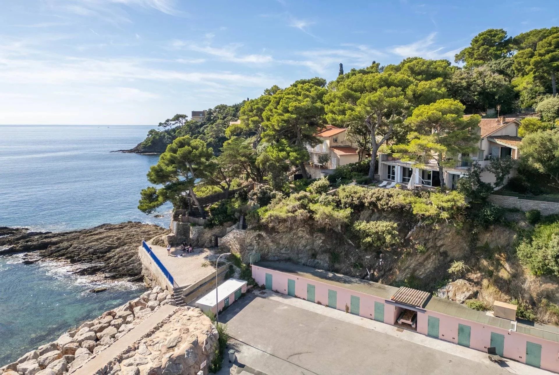 Une villa divisée en deux appartements en copropriété surplombant le Port du Niel. Elle profite d’une exposition Sud Est en première ligne mer, d’une vue panoramique sur les îles du Grand et Petit Ribaud, ainsi que Porquerolles.