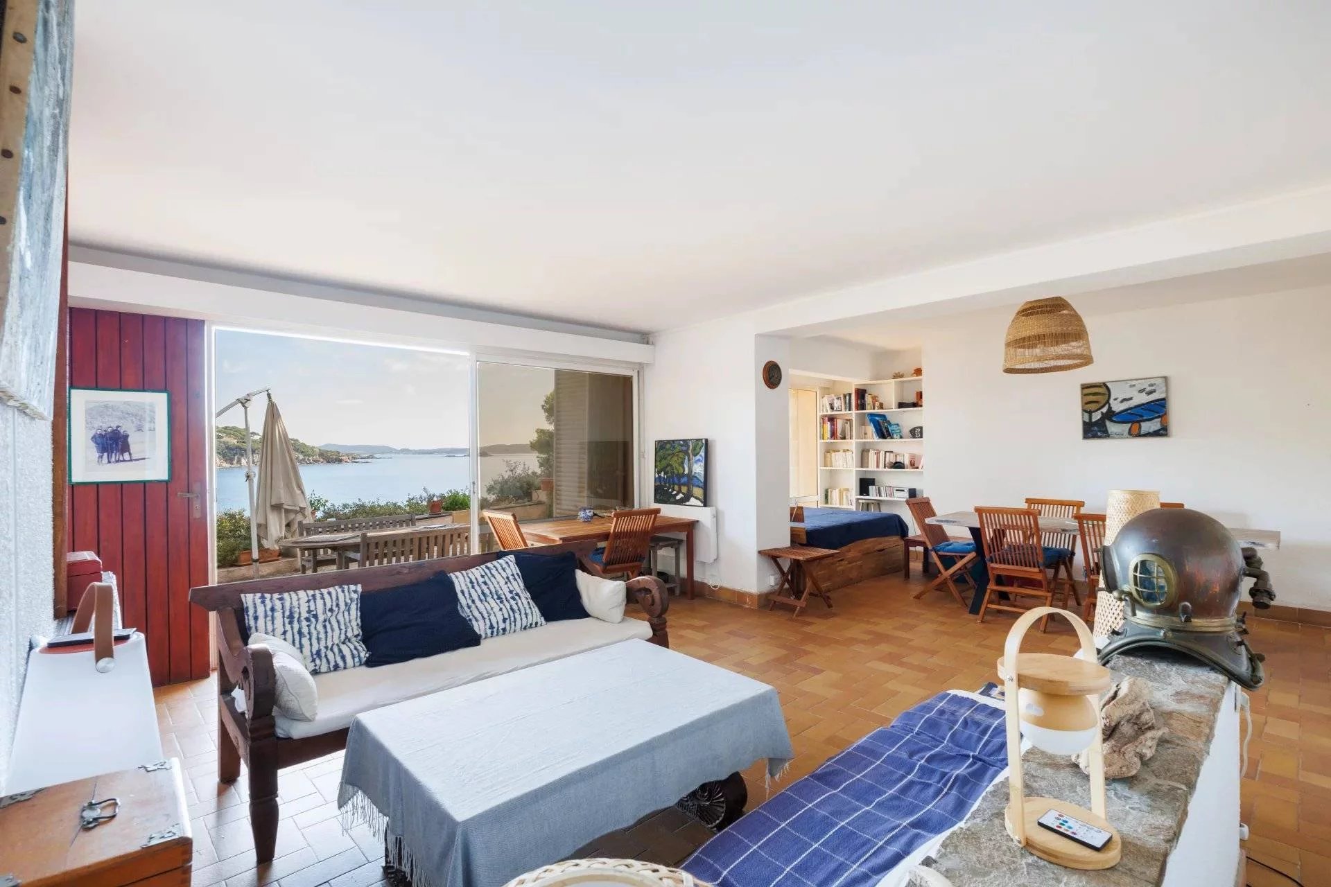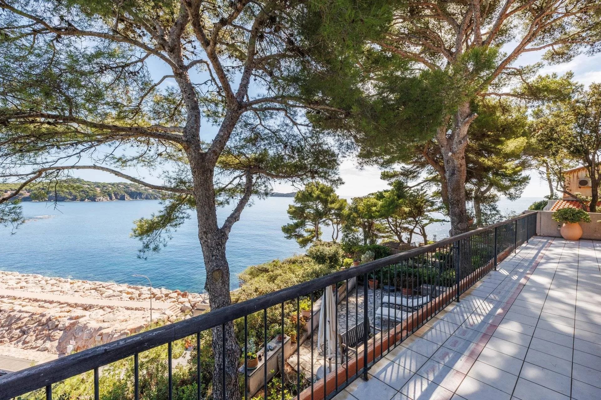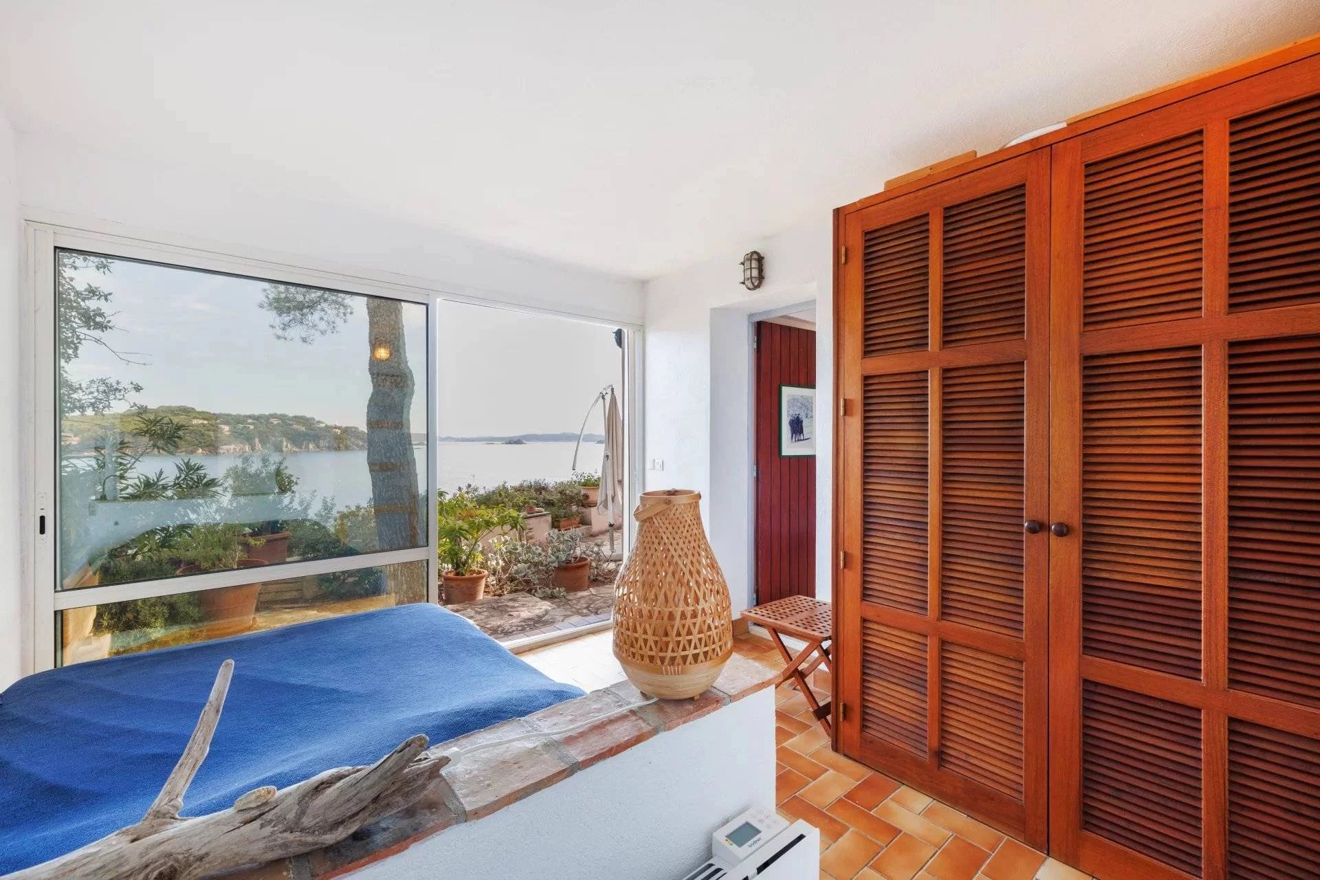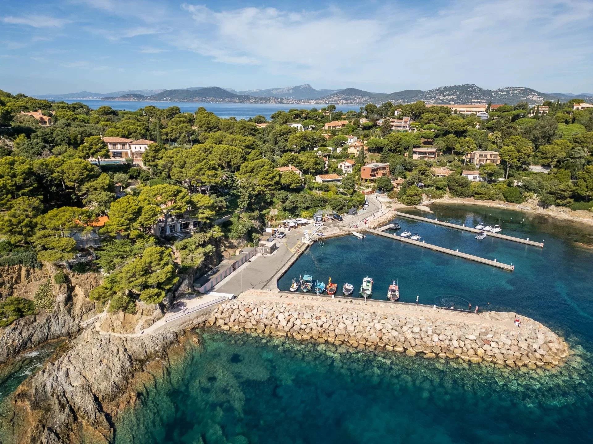 Une villa divisée en deux appartements en copropriété surplombant le Port du Niel. Elle profite d’une exposition Sud Est en première ligne mer, d’une vue panoramique sur les îles du Grand et Petit Ribaud, ainsi que Porquerolles.