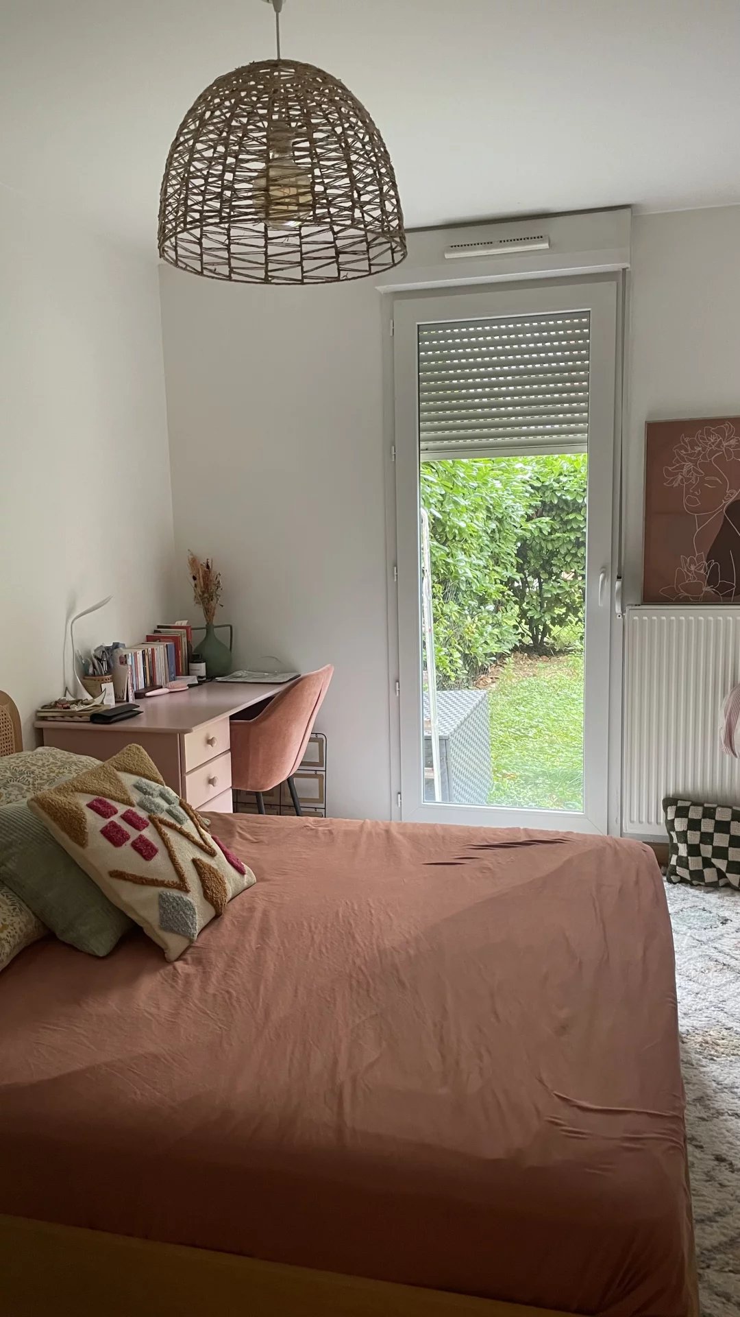 RARE ! AU CALME ABSOLU.Dans un véritable ilôt de verdure ! Appartement refait à neuf avec des matériaux de qualité, bénéficiant d'un grand jardin privatif de 100 m² env, comprenant : Entrée avec placards, beau séjour salon sol parquet chêne ouvert sur la cuisine aménagée et équipée (35m² l'ensemble), 2 chambres de 12m² env avec placards, donnant sur le jardin, une salle de douches et un wc.