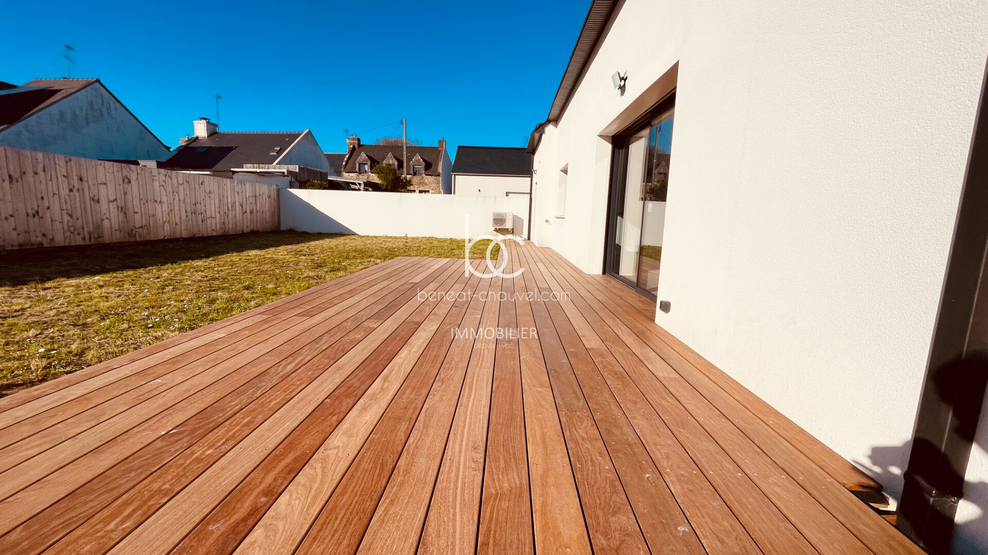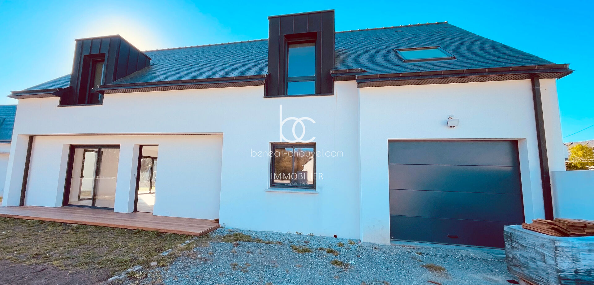 Venez découvrir cette maison contemporaine d'une généreuse surface de 155 m², idéalement située dans le centre de SARZEAU (56370), à proximité immédiate des commerces du bourg. Cette propriété se distingue par ses volumes spacieux, sa belle exposition et ses prestations de qualité, en faisant une résidence principale moderne et très confortable. L'agencement est conçu pour le confort et la fonctionnalité d'une vie de plain-pied. Le rez-de-chaussée est organisé autour d'un vaste salon/séjour intégrant une cuisine ouverte moderne, un espace de vie convivial et lumineux. L'atout majeur : une suite parentale complète comprenant une chambre, un dressing et une salle d'eau privative. Ce niveau comprend également un wc avec lave-mains, un grand rangement sous l'escalier optimisent l'espace et un garage attenant avec un espace buanderie. L'étage est dédié à l'espace familial et se compose d'un dégagement desservant trois chambres supplémentaires, d'une grande salle de bain et point fort, d'une grande pièce au-dessus du garage. Cette pièce polyvalente est idéale pour créer un bureau spacieux, une salle de jeux ou un atelier. L'ensemble est édifié sur un terrain de 505 m², une surface extérieure facile d'entretien. Venez rapidement découvrir cette opportunité rare aux belles prestations : une maison contemporaine avec le centre de SARZEAU à vos pieds. Prix FAI : 524 500 euros dont 4.90 % honoraires TTC à la charge de l'acquéreur.