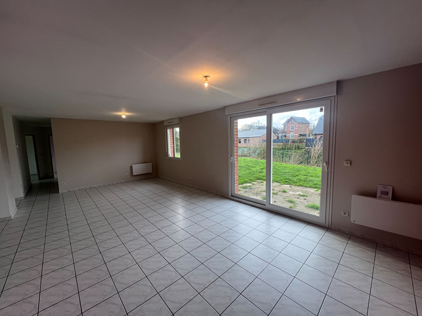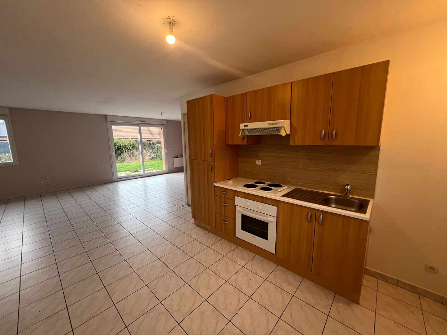 Jolie maison individuelle de plain pied en parfait état offrant hall d'entrée, séjour, cuisine équipée, 3 chambres, salle de bains et wc. Garage, terrain clos. Disponible de suite