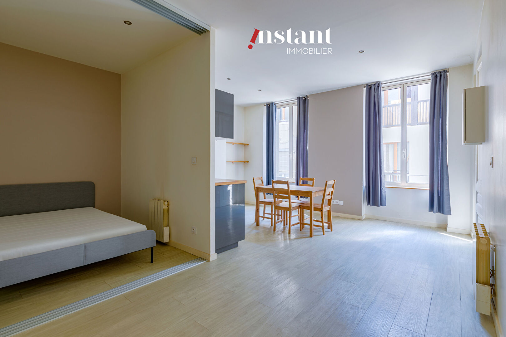 Rue Marietton // Secteur VALMY Appartement calme sur cour en RDC refait il y a peu, comprenant un séjour donnant sur la cuisine, une salle de bains, un wc séparé et une chambre. Eau coll.